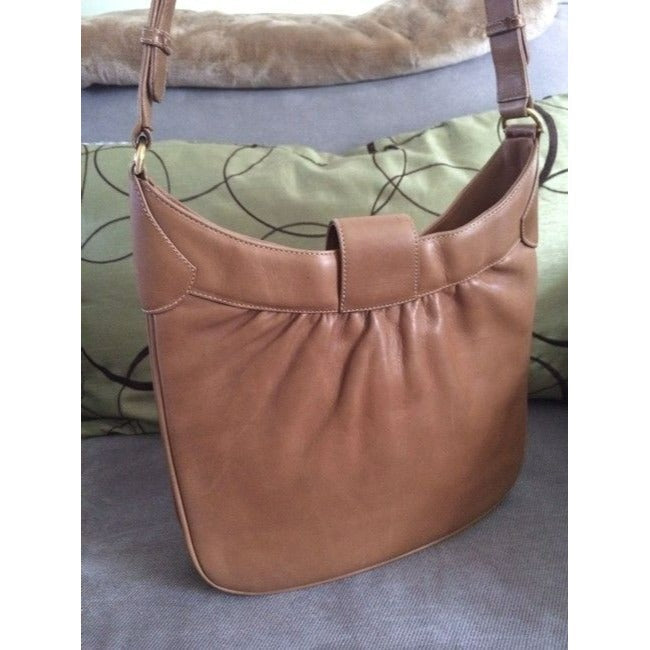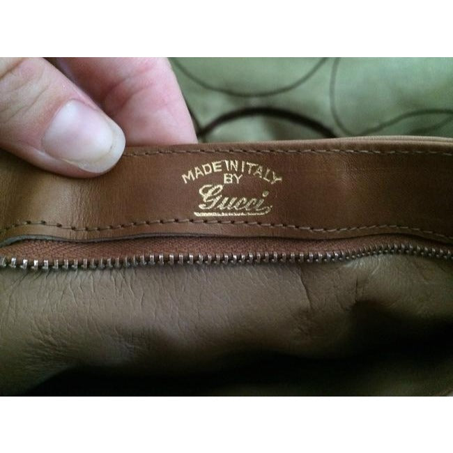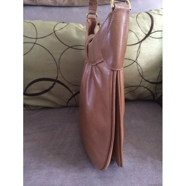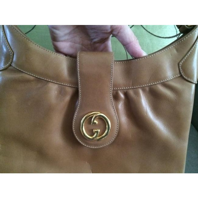 Gucci Camel Leather Vintage Gold GG Accent Bag