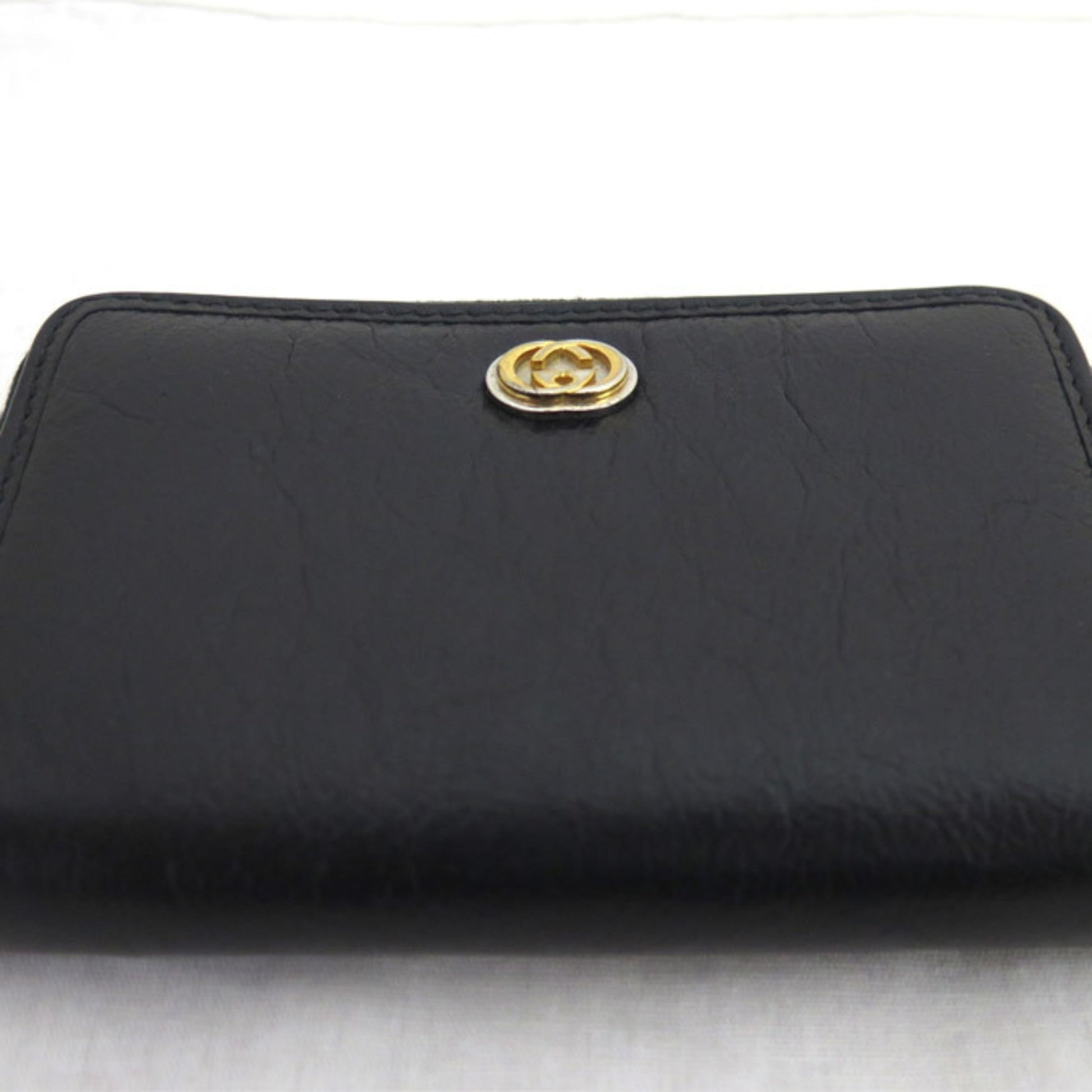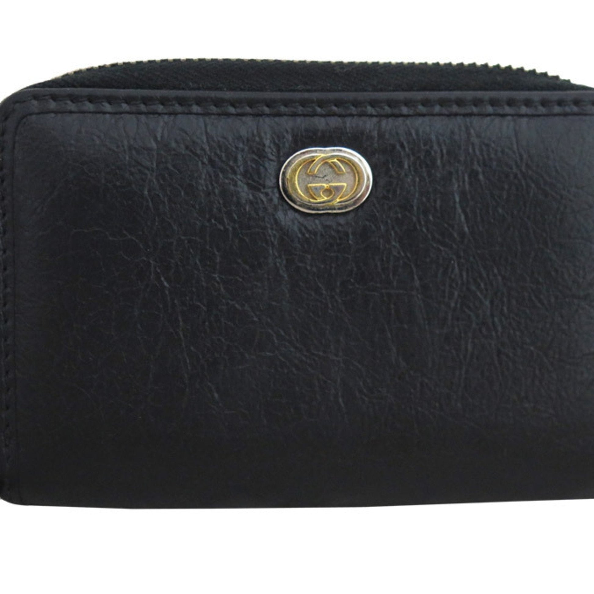 Gucci Card Case Interlocking G Black x Silver Hardware Leather Business Holder Pass Women's Men's 581530