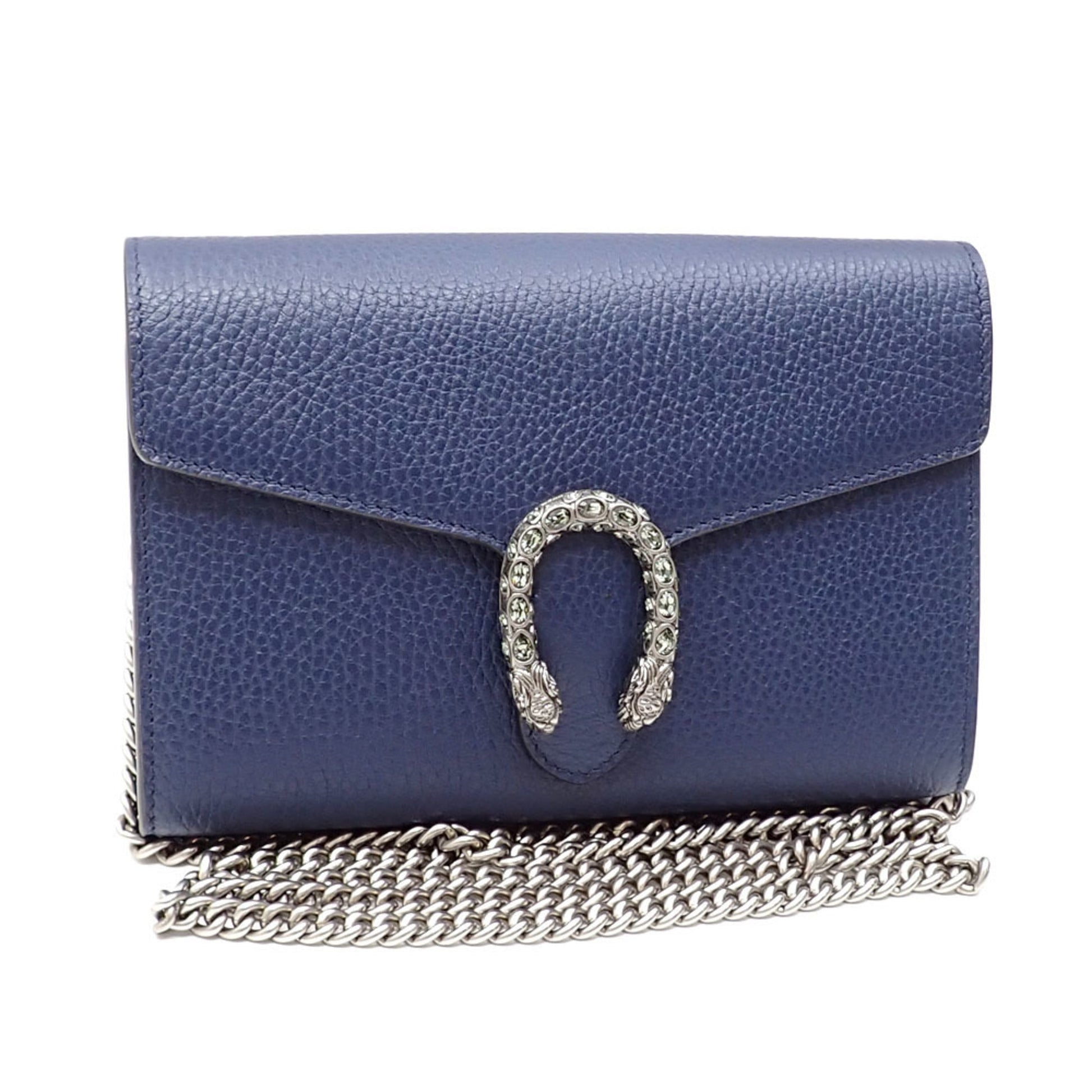 Gucci Chain Shoulder Bag Dionysus Leather Women's Navy 401231 Tiger Head