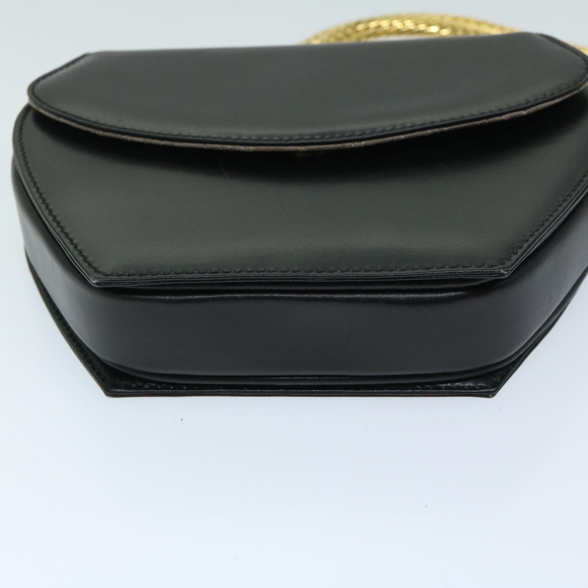 GUCCI Chain Shoulder Bag Leather Black Auth fm3257