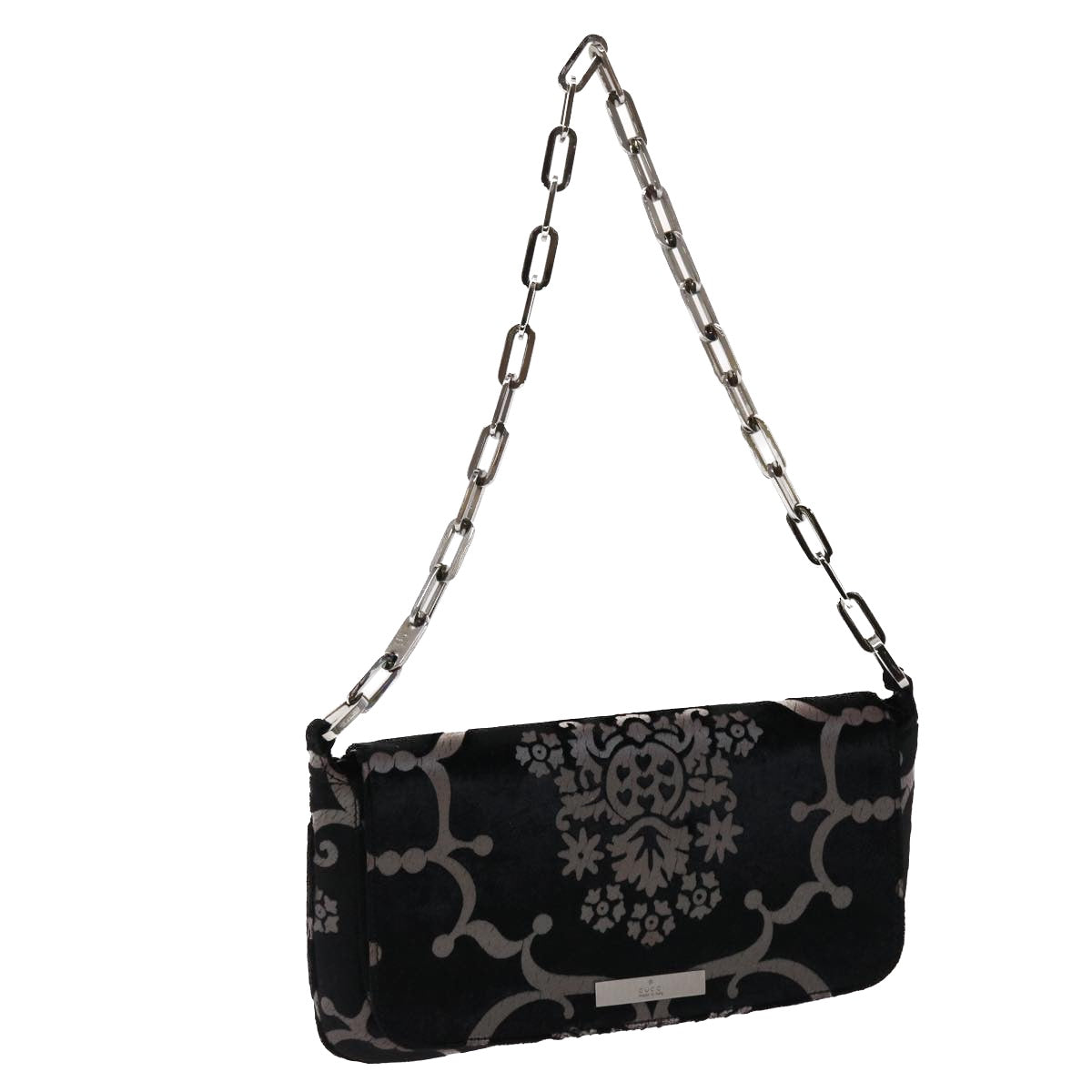 GUCCI Chain Shoulder Bag Velor Black 0013829 am4747
