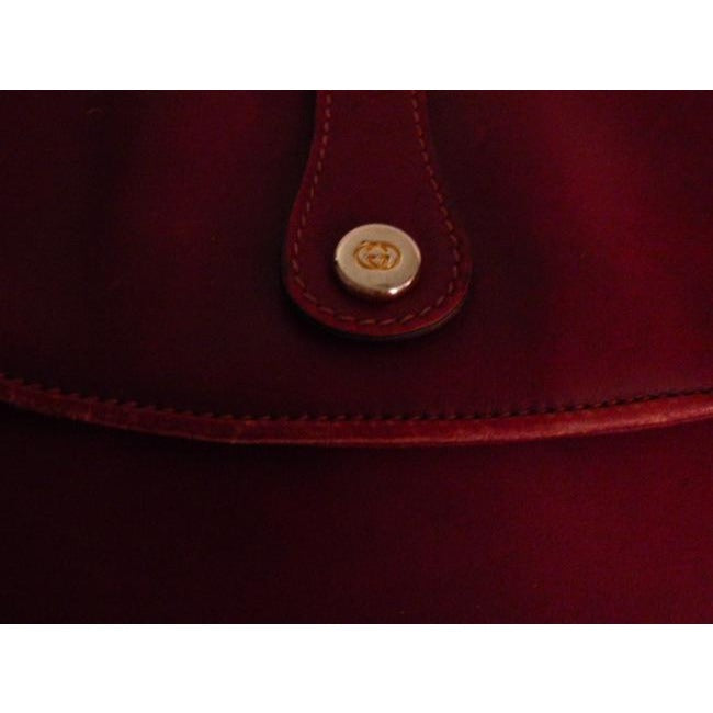 The bag is a two-way style that can be worn as a cross body, shoulder, or clutch style purse by GUCCI in a rare, burgundy leather. It is an envelope top, snap closure style with a removable strap and gold hardware. It has expandable sides to allow it to hold more than you might think. There are understated GG gold accent at the front snap closure.