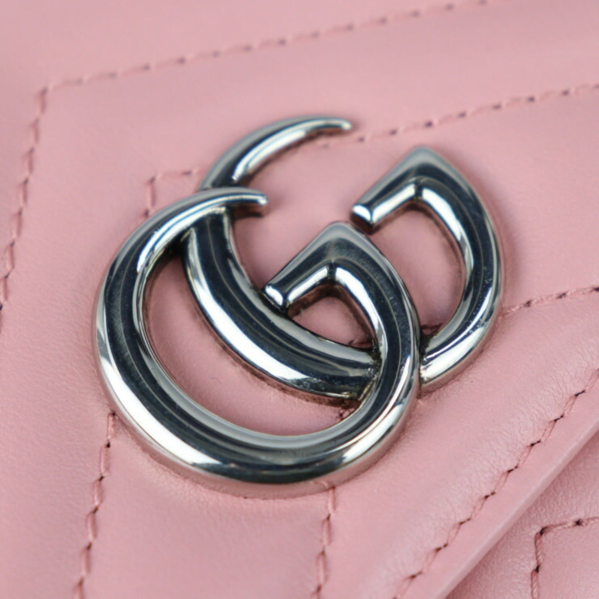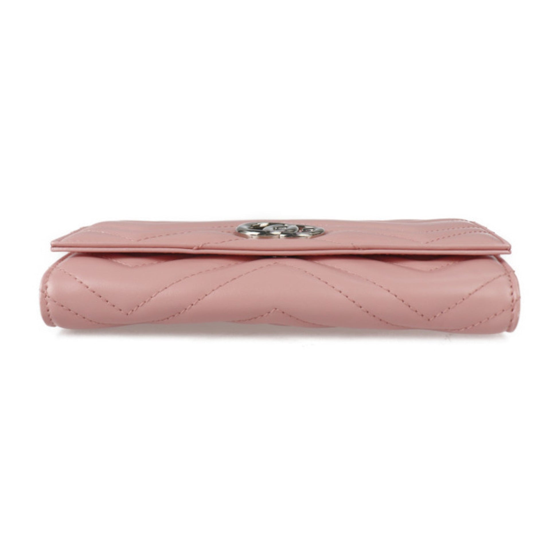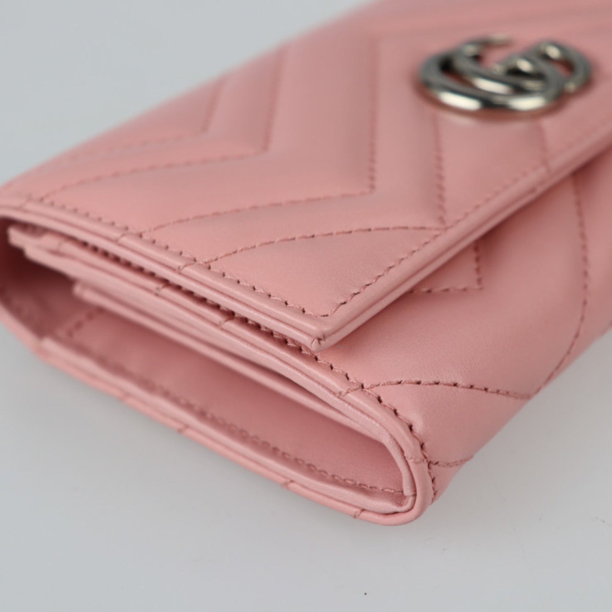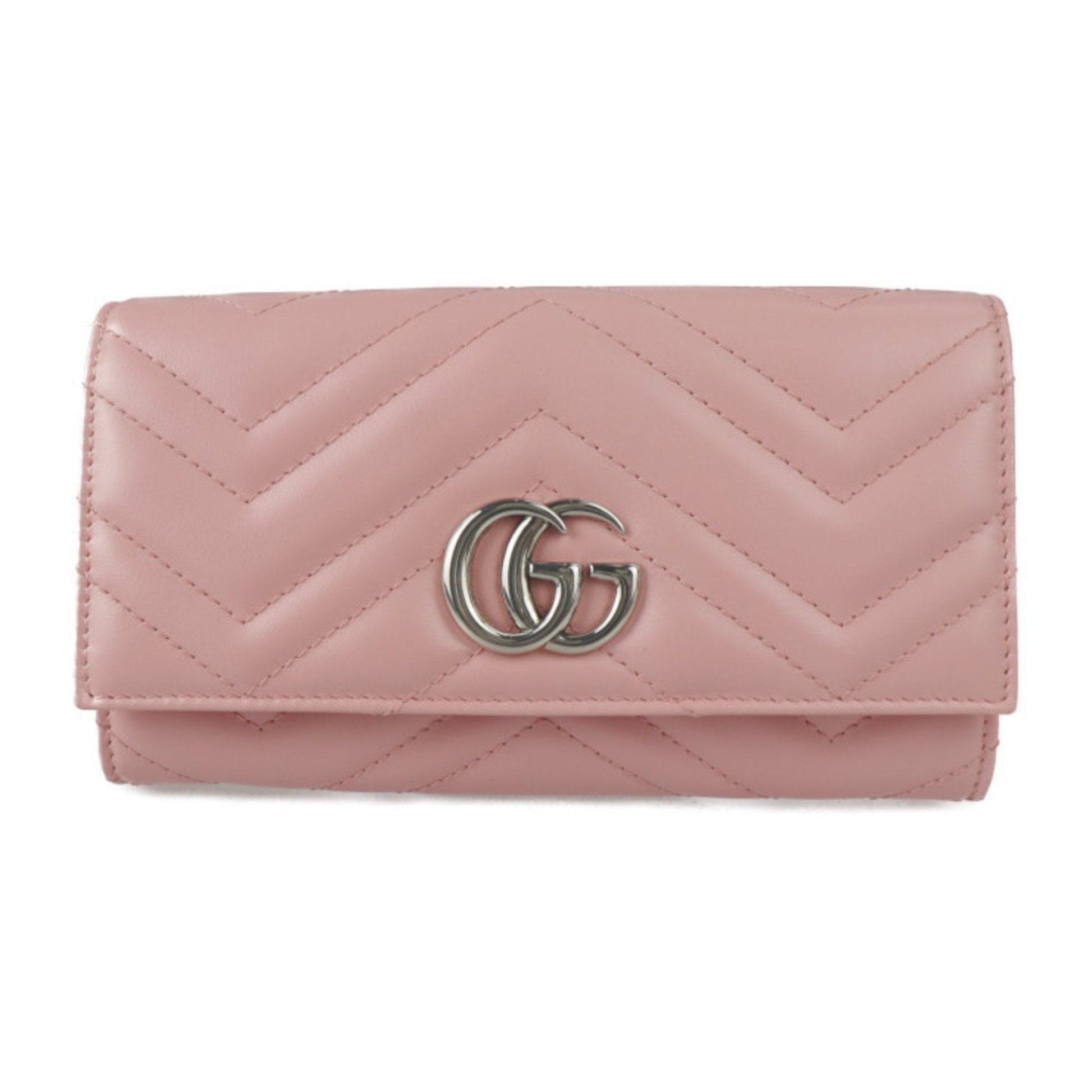 Gucci Continental Wallet GG Marmont Bifold 443436 Leather Pink Series Silver Metal Fittings Long