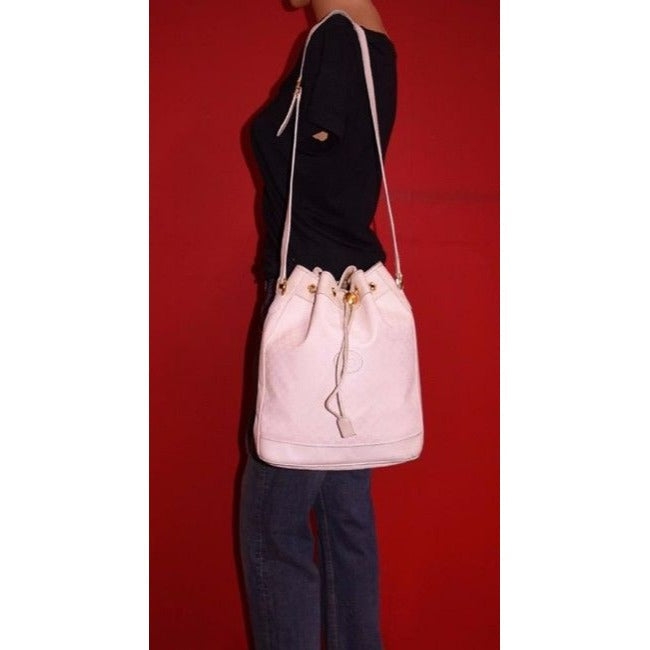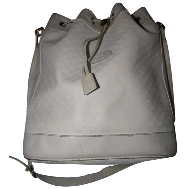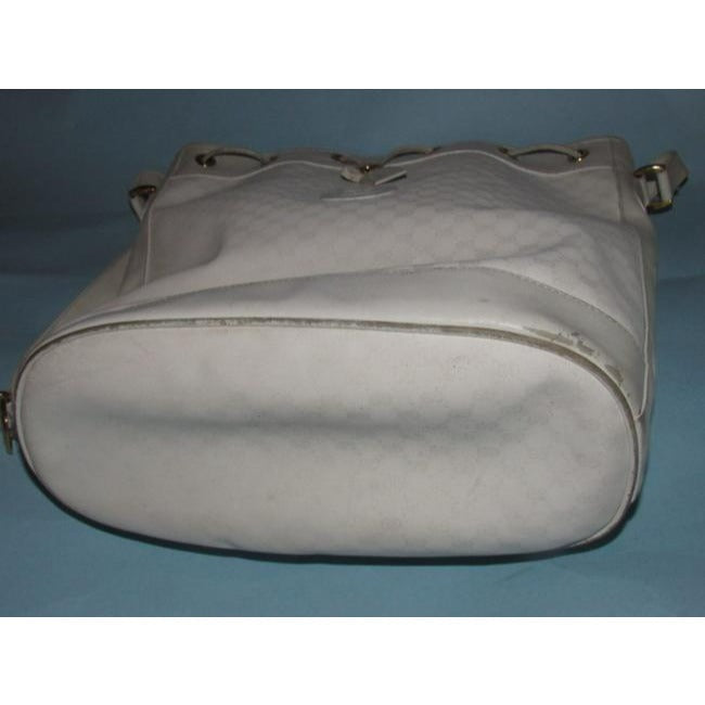 Gucci White Micro G Logo Print Leather Cross Body Bucket Purse