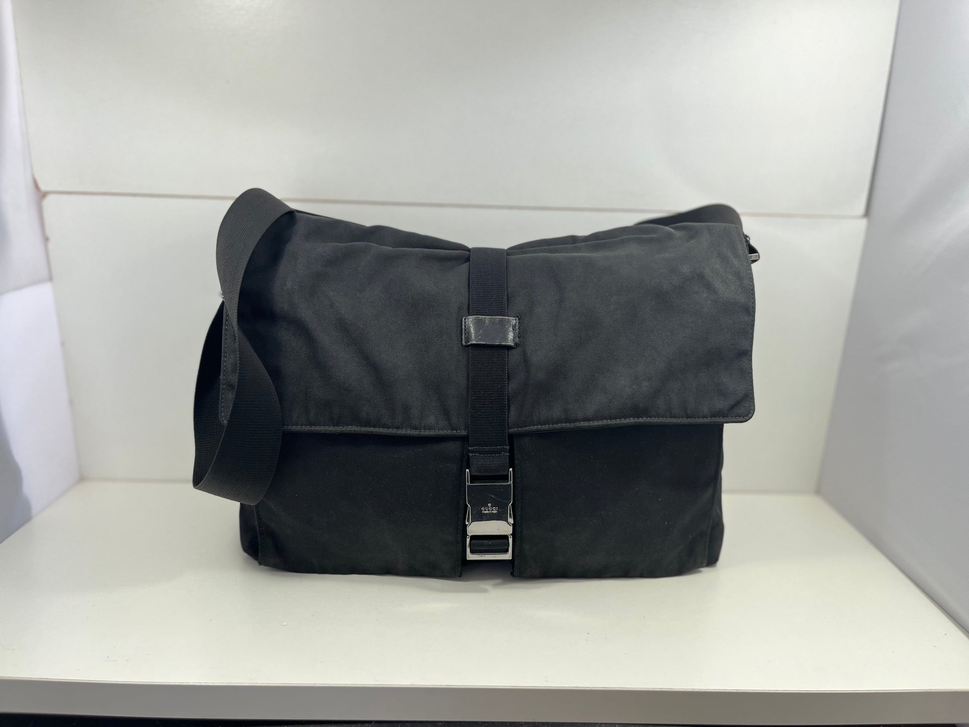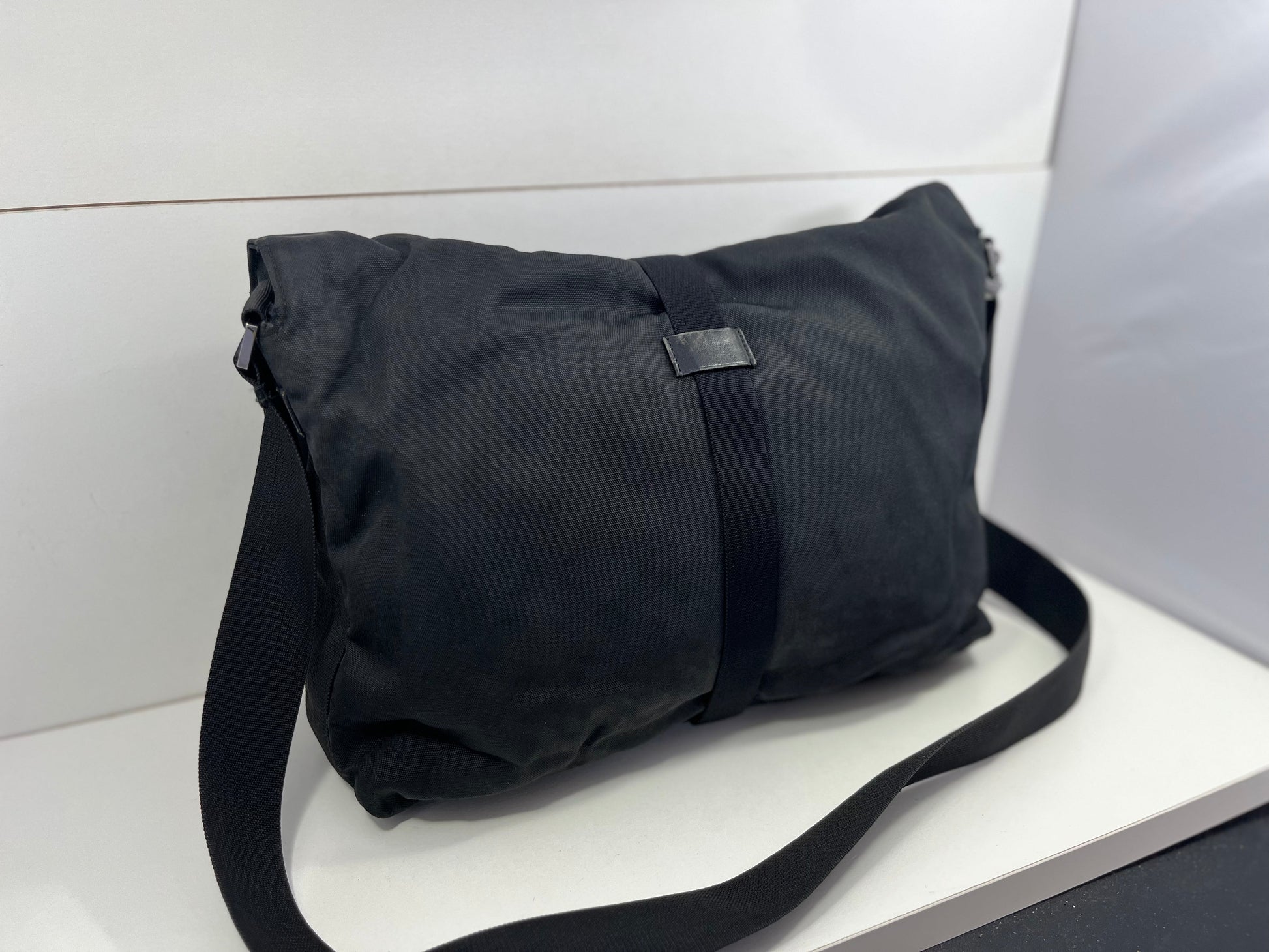 Gucci Crossbody taske i sort stof og s�lv detaljer. Remmen kan justeres i l�ngde.