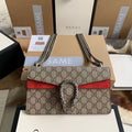 structured GG Supreme canvas bag with our textured tiger head closure-a unique detail referencing the Greek god Dionysus, who in myth is said to have crossed the river Tigris on a tiger sent to him by Zeus. The sliding chain strap can be multiple ways, changing between a shoulder and a top handle bag.