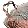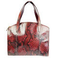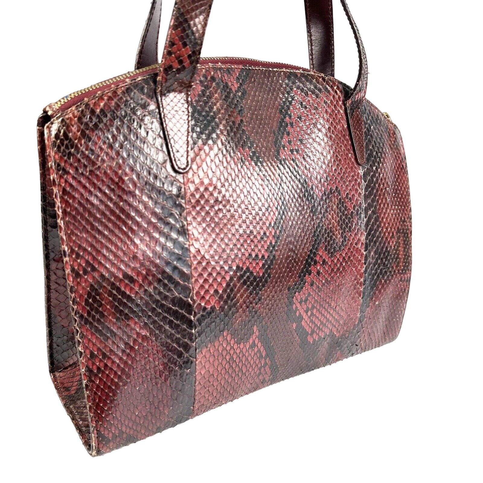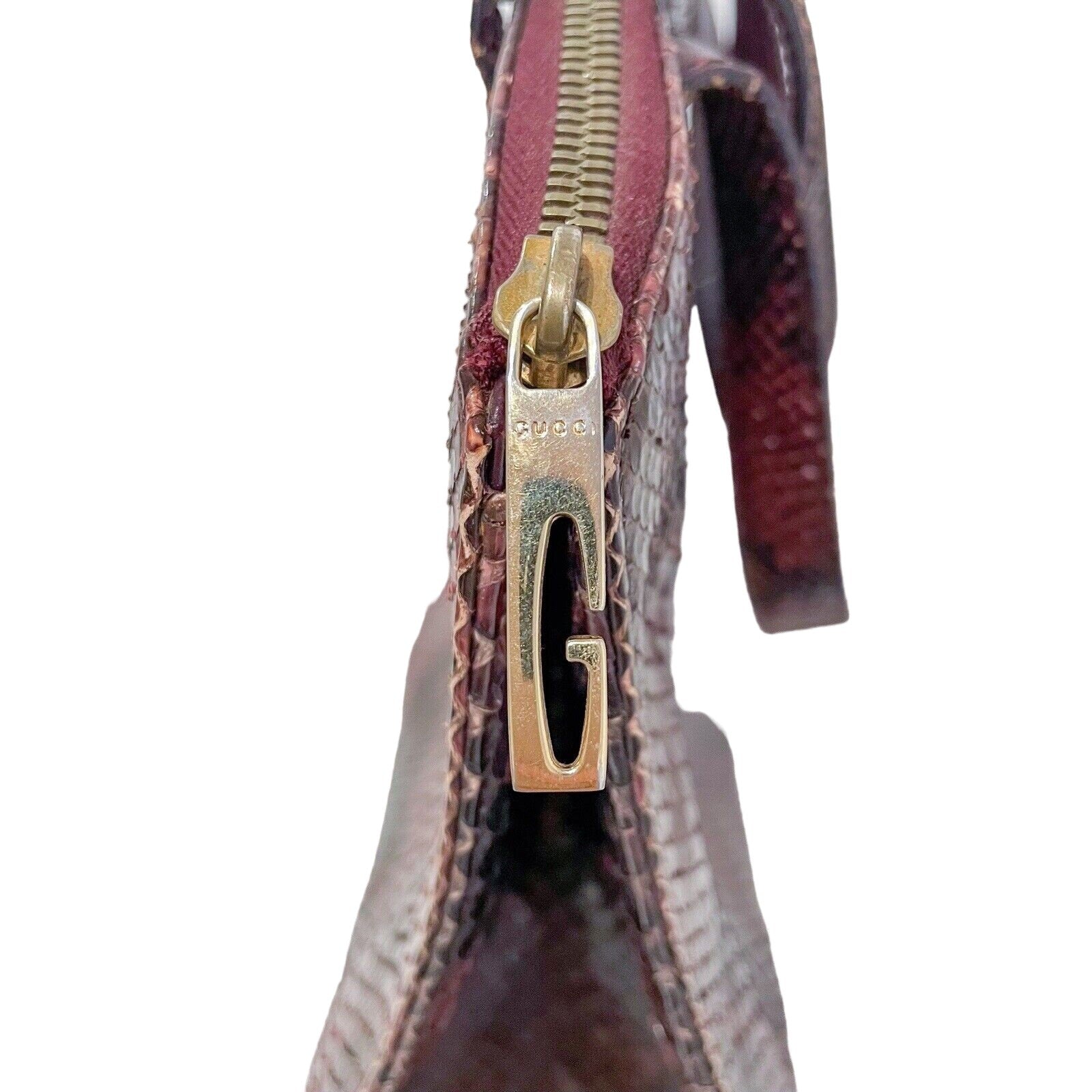 The bag is a style shoulder bag. The handbag is made of python leather in shades of burgundy & red with gold hardware, including a large G zipper pull clasp! The sides & domed top of the handbag allows it to hold a lot more than you think!