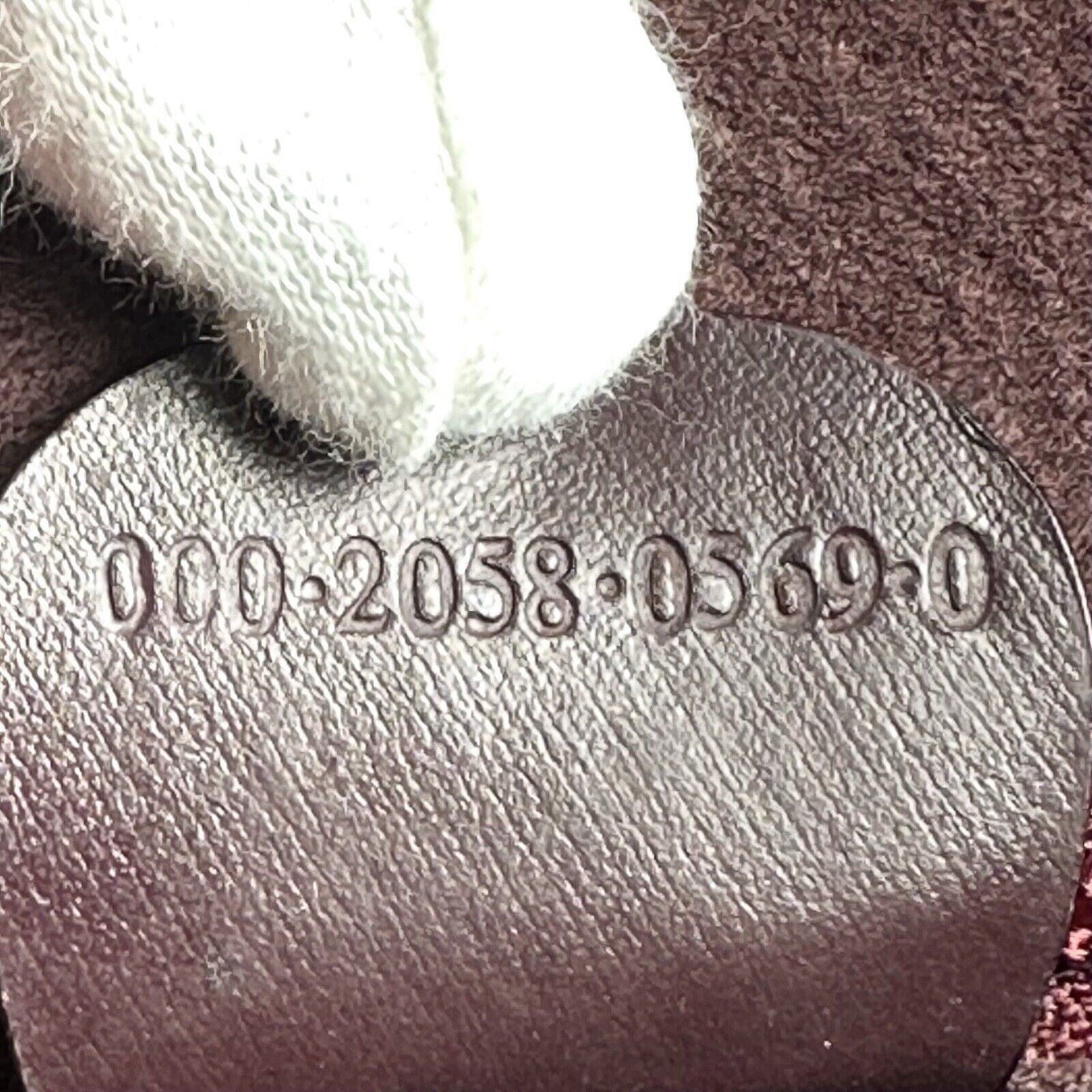 Inside the bag has a light burgundy suede lining which appears very lightly worn and is very clean - see notes It has one main interior compartment, one zipper and slot pockets to keep you organized! There is a leather tag inside above the zip close pocket with an embossed stamp reading "Gucci, made in italy" on one side and is stamped with serial #000 2038 0369 0 on the back. It's an iconic Gucci and will always be in style - Don't miss out!
