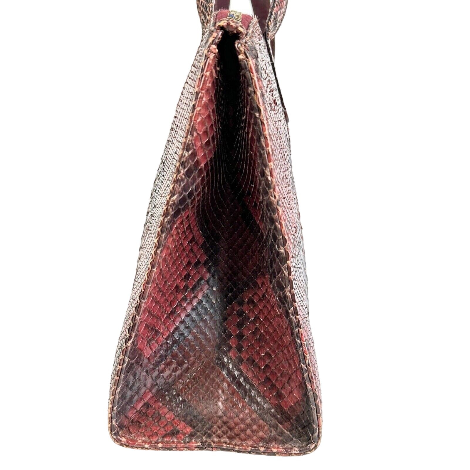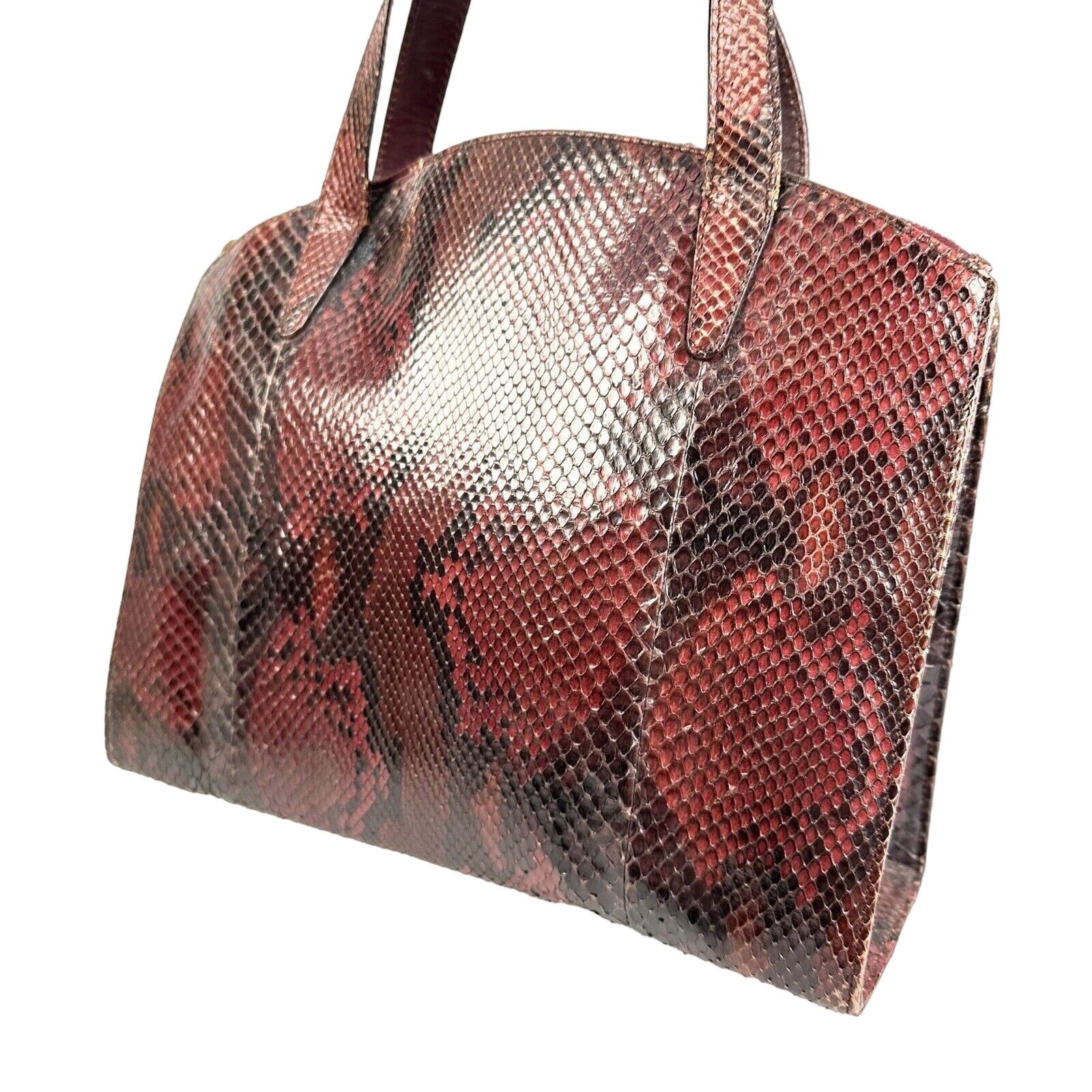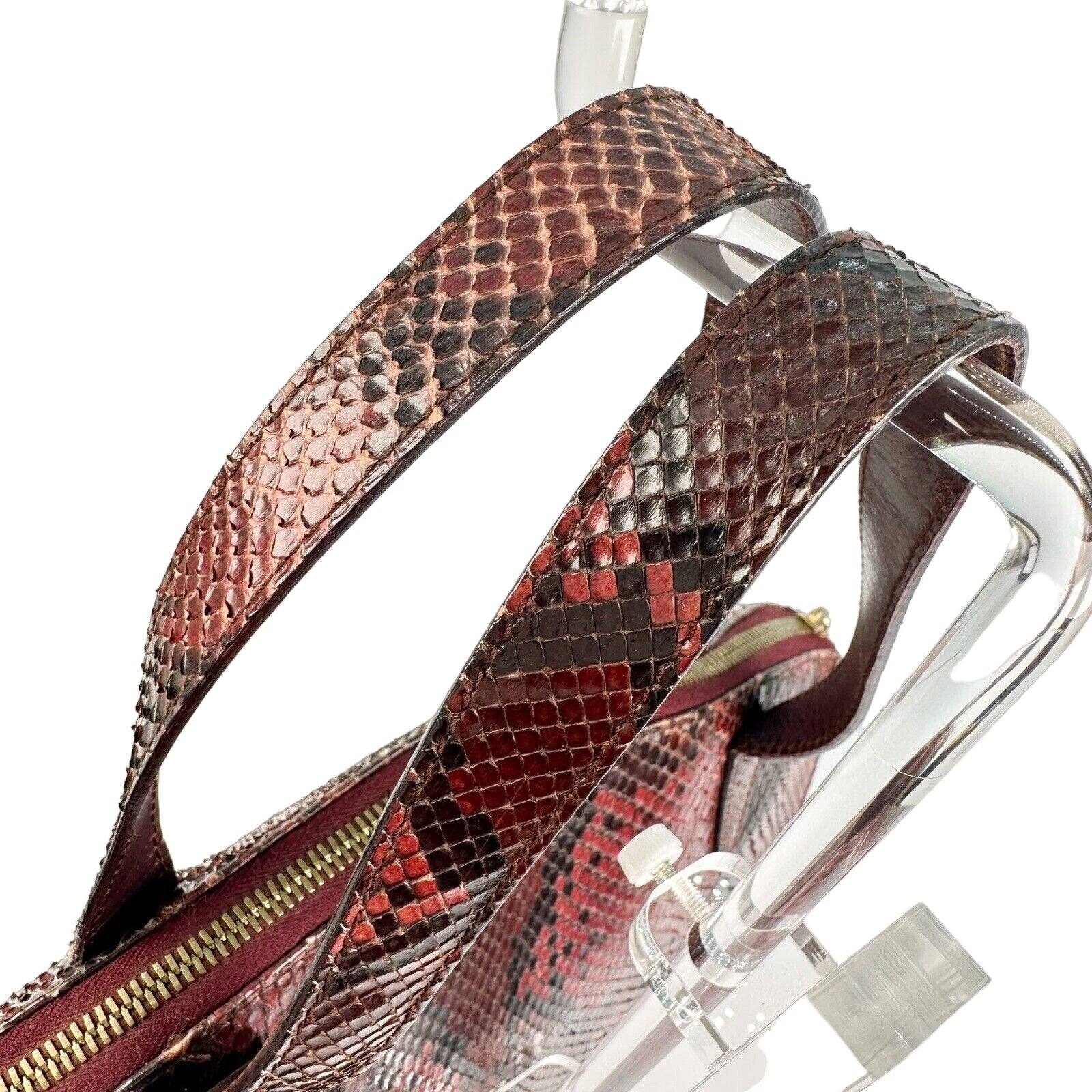 For sale is a mint condition, Tom Ford era Gucci domed top satchel made of rich, python leather in shades of red, grey, and burgundy featuring a zip top closure, expandable bottom, two flat straps, and gold hardware! It's a unique take on a classic style that would work great as your signature handbag - looks like it's never been used!