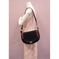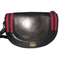 Gucci Early Saddle With Sherry Stripes Black Leather And Gg Leather Shoulder Bag