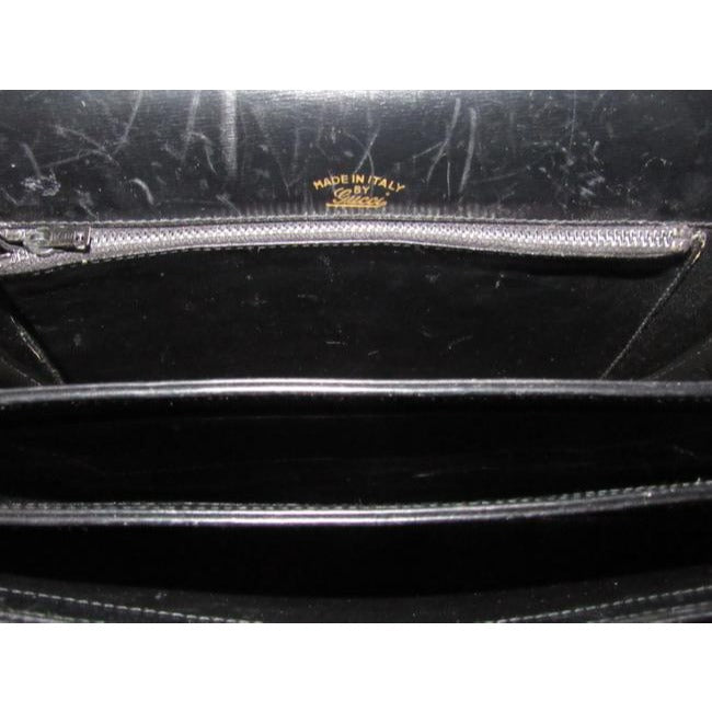 This purse is timeless and would work with any outfit! The interior is clean and roomy! It is made made of black leather and there are lots of pockets and compartments! You will never need another black purse! It predates serial numbers but is embossed with the era's, 'Made in Italy by Gucci' in gold and '80' above '72' in the right hand corner. It has been authenticated by a third party expert, so buy with confidence! This is a wonderful, everyday, leather purse with an edge!