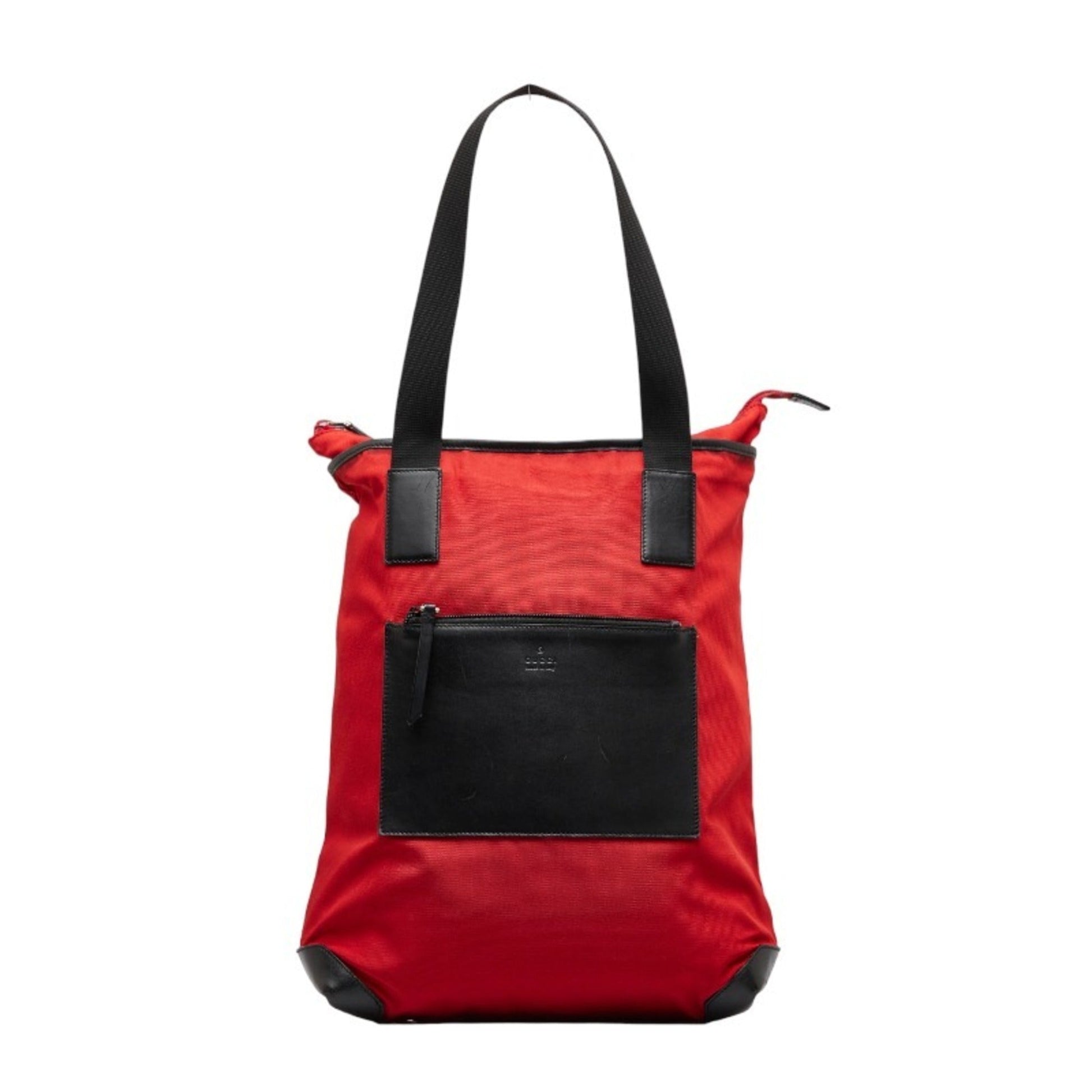 Gucci Embossed Handbag Tote Bag 019 0401 Red Black Nylon Leather Women's GUCCI