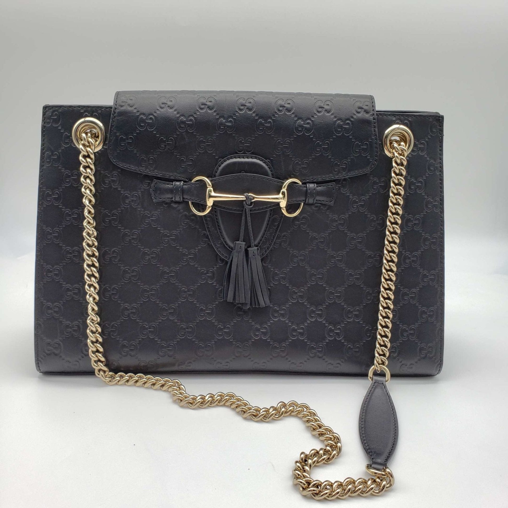 Gucci Emily Guccissima Large Black Shoulder Bag