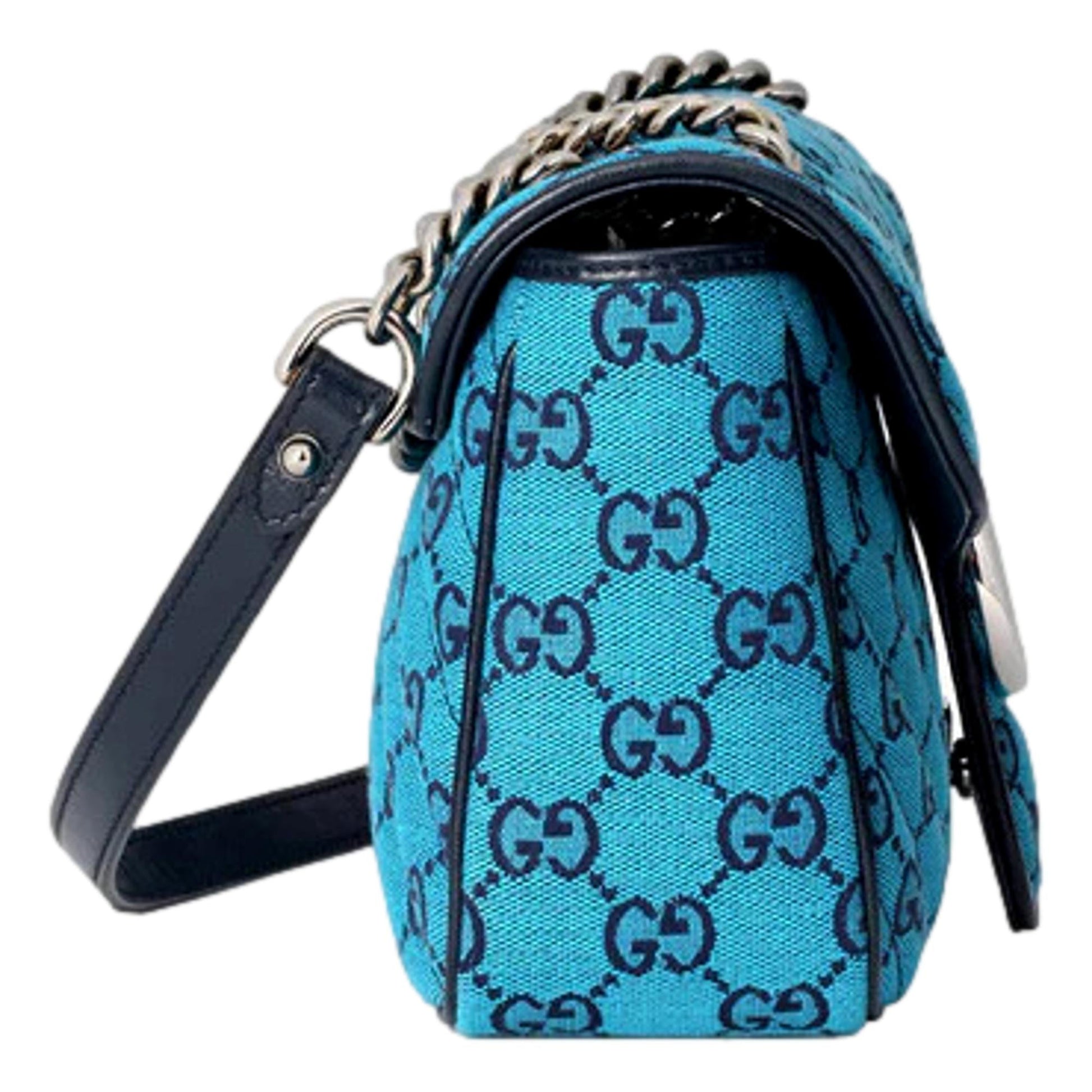 Gucci Flap Marmont Matelasse Blue Printed Canvas Shoulder Bag 443497