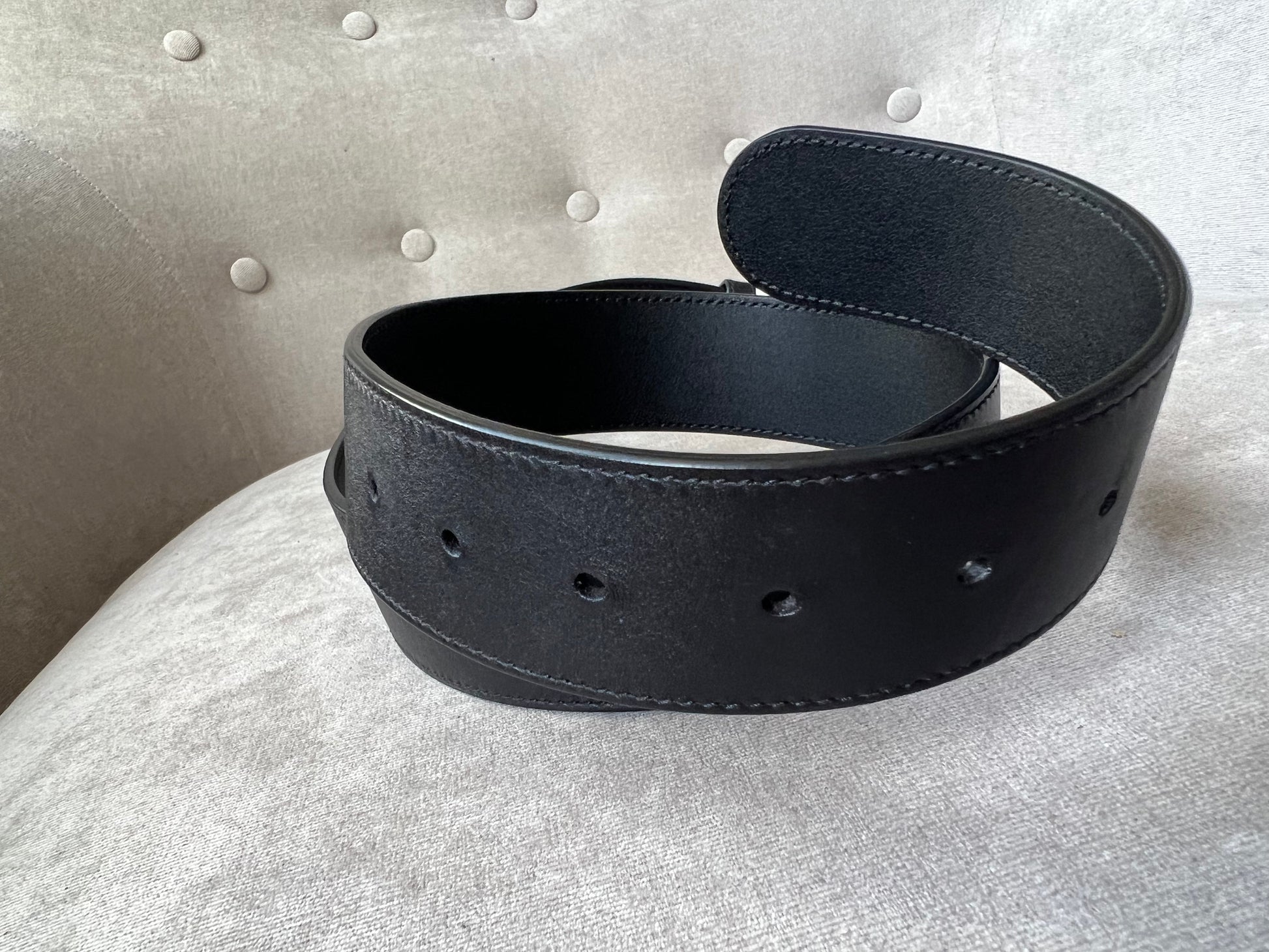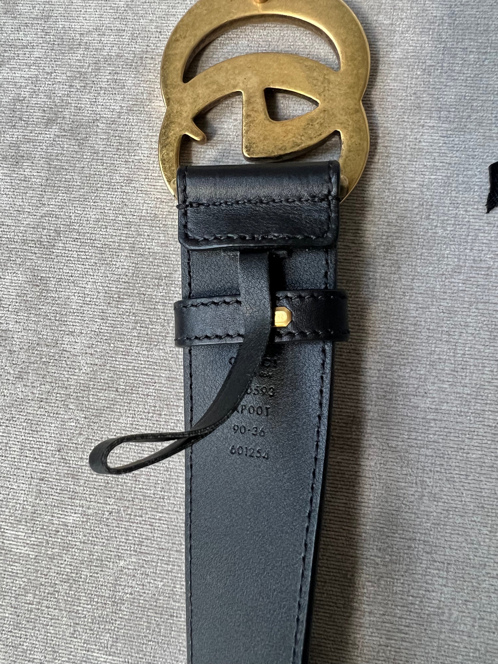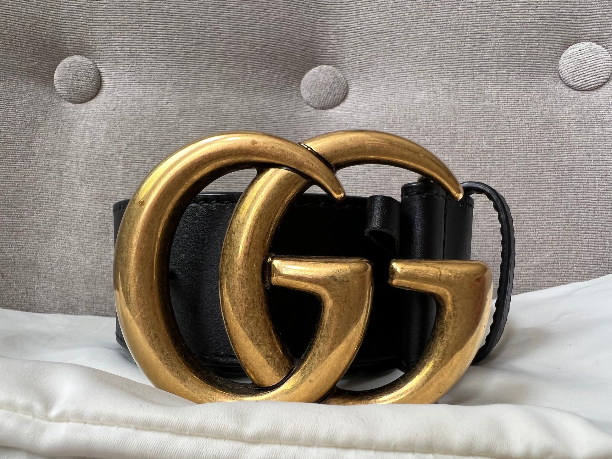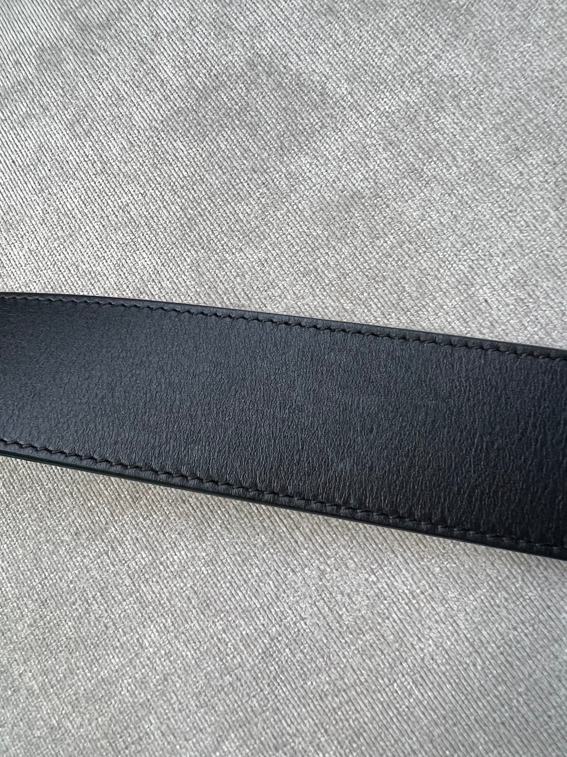 Gucci Black Marmont Re-edition Wide Leather Belt with Antique gold Buckle. Note an extra hole has been punched to enable it to be smaller.