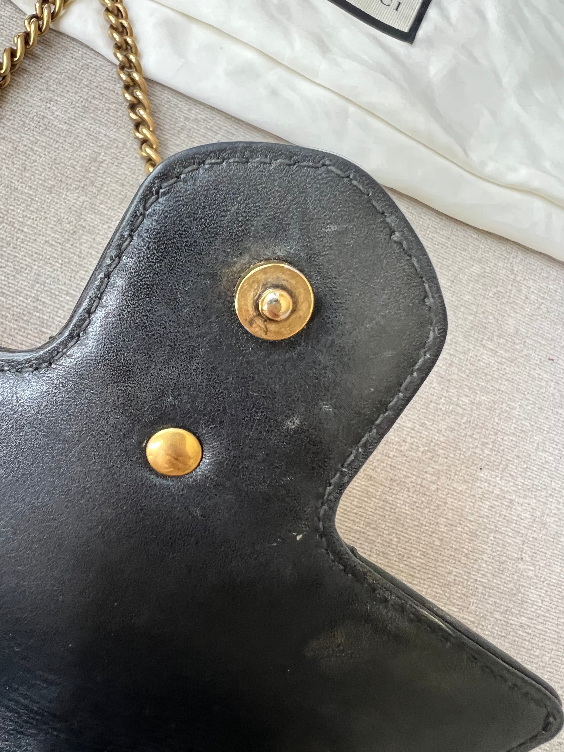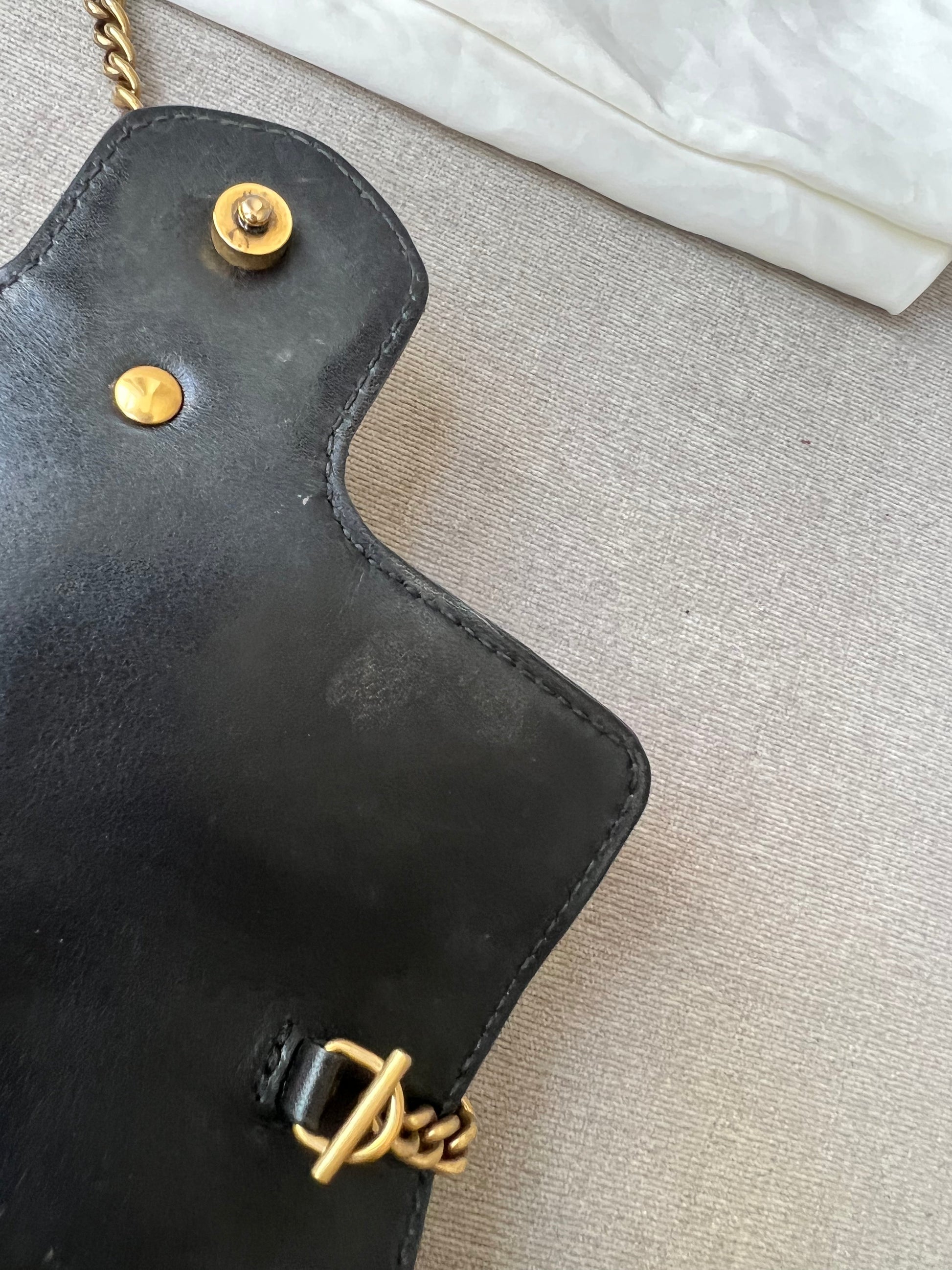 Hardware: Good condition with some tarnishing to the D rings.