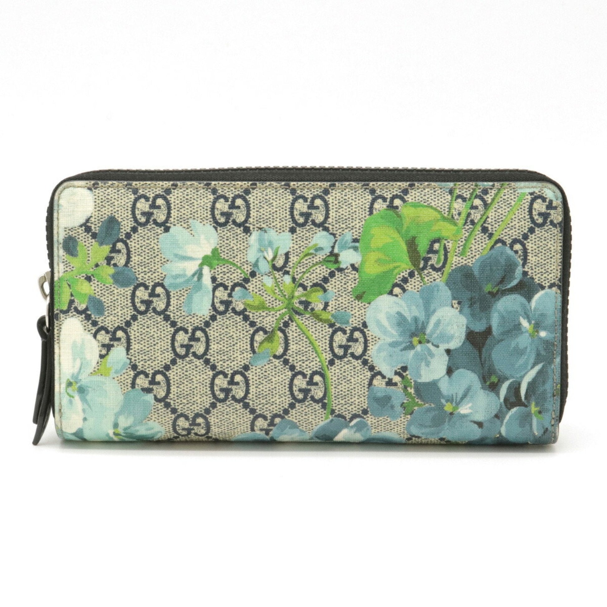 Gucci GG Blooms Supreme Flower Round Long Wallet PVC Leather Beige Blue Multicolor 546355