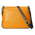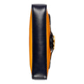 This Gucci shoulder bag is crafted from smooth leather in two-tone leather. The main body is in a burnt orange leather with black leather trim. The small sized shoulder bag is defined by the Double G. Featuring antique gold-tone hardware, lined interior with a zip pocket and adjustable shoulder strap. The classic silhouette gives the message that fashion is timeless.