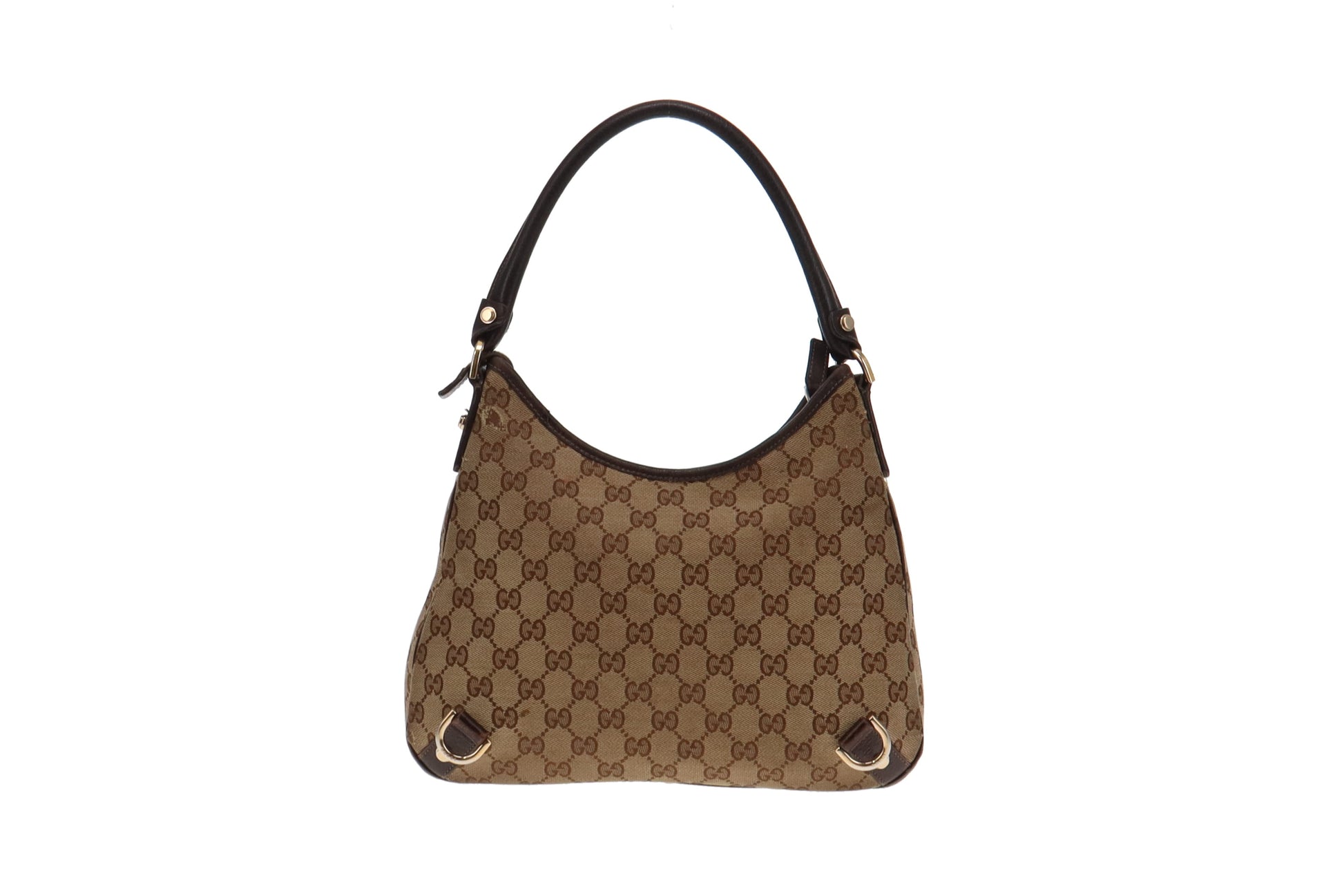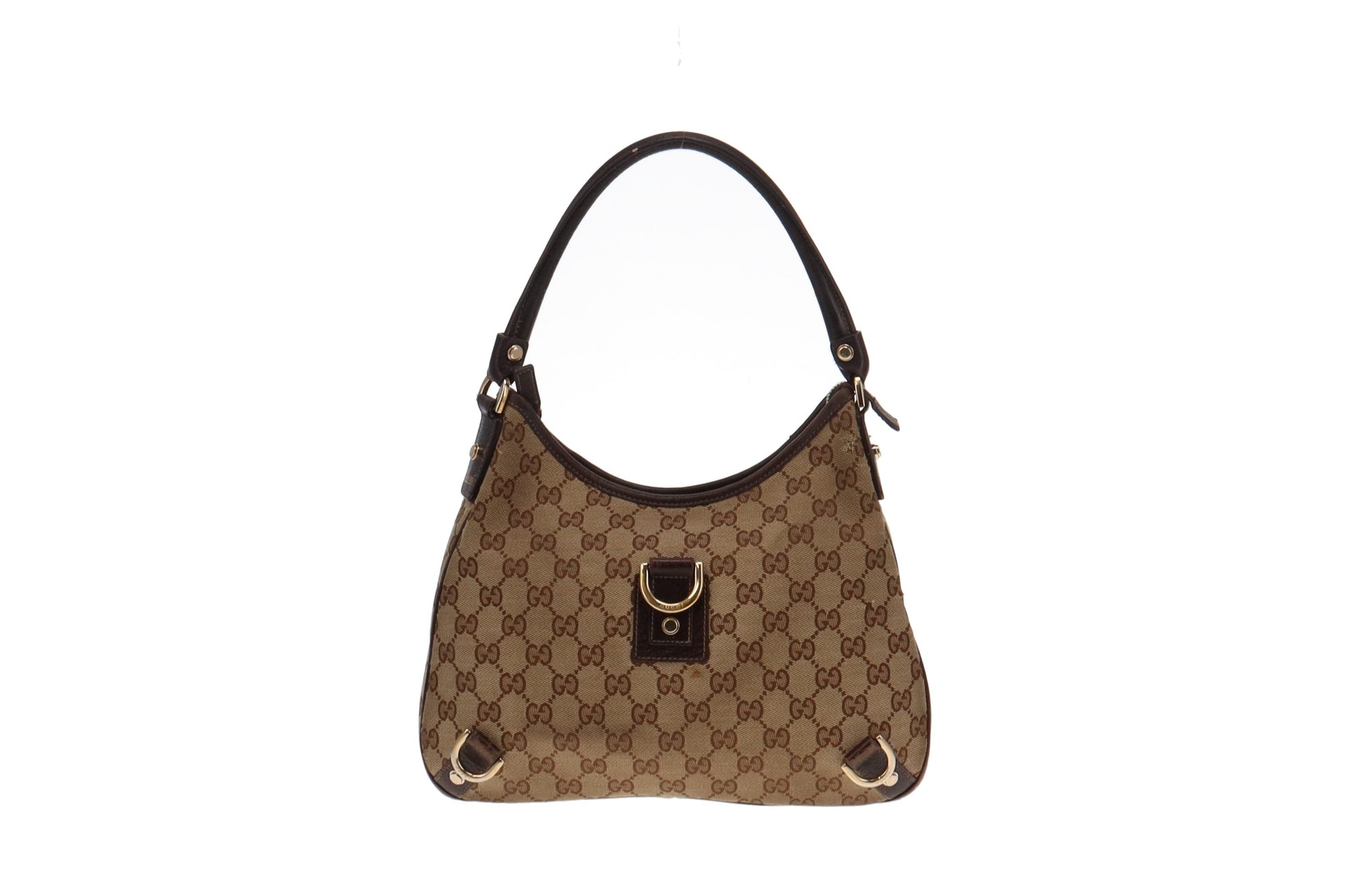 Gucci GG Canvas and Brown Leather Trim Abbey Shoulder Bag
