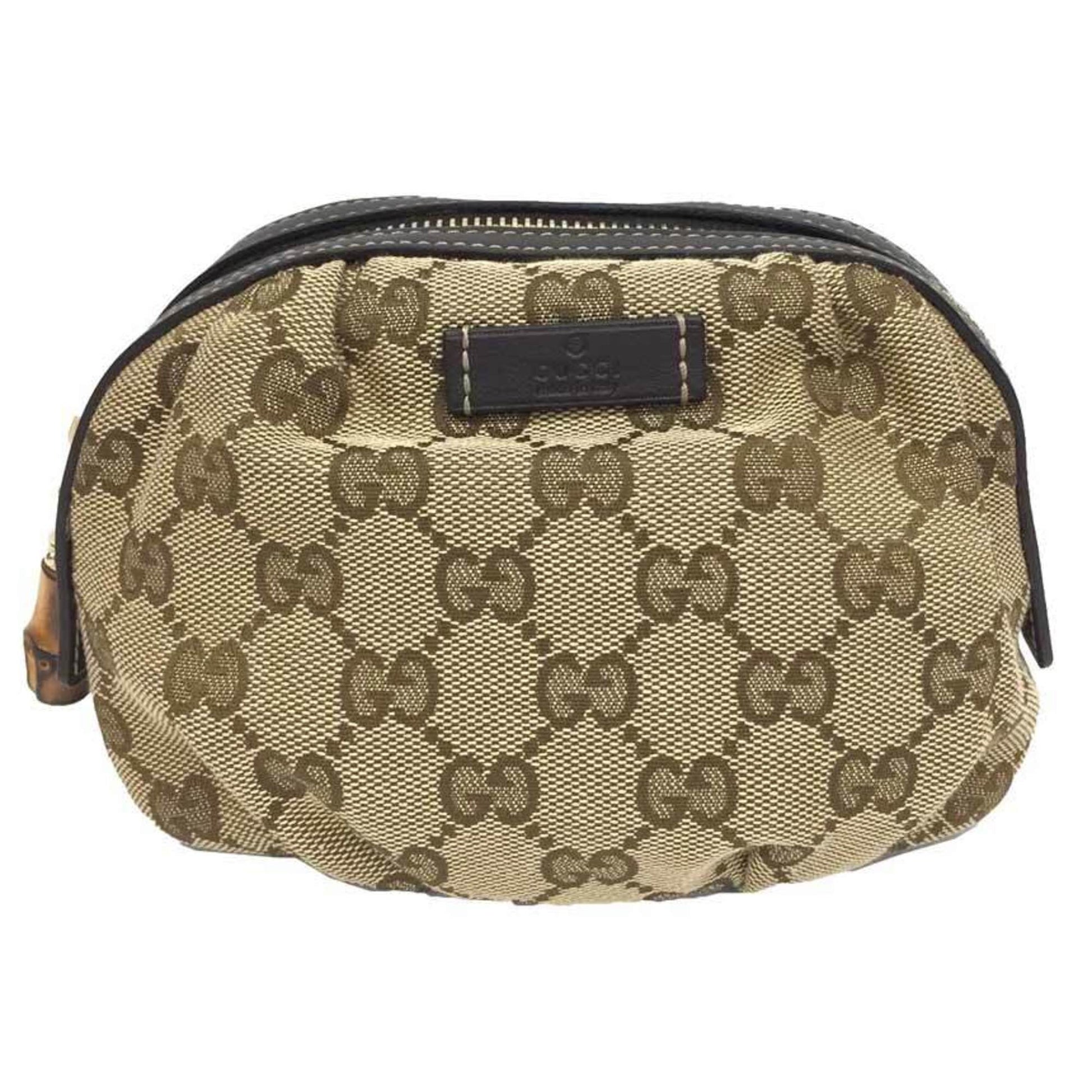 Gucci GG Canvas Bamboo Pouch WG Beige x Brown Leather Women's Unisex Bag