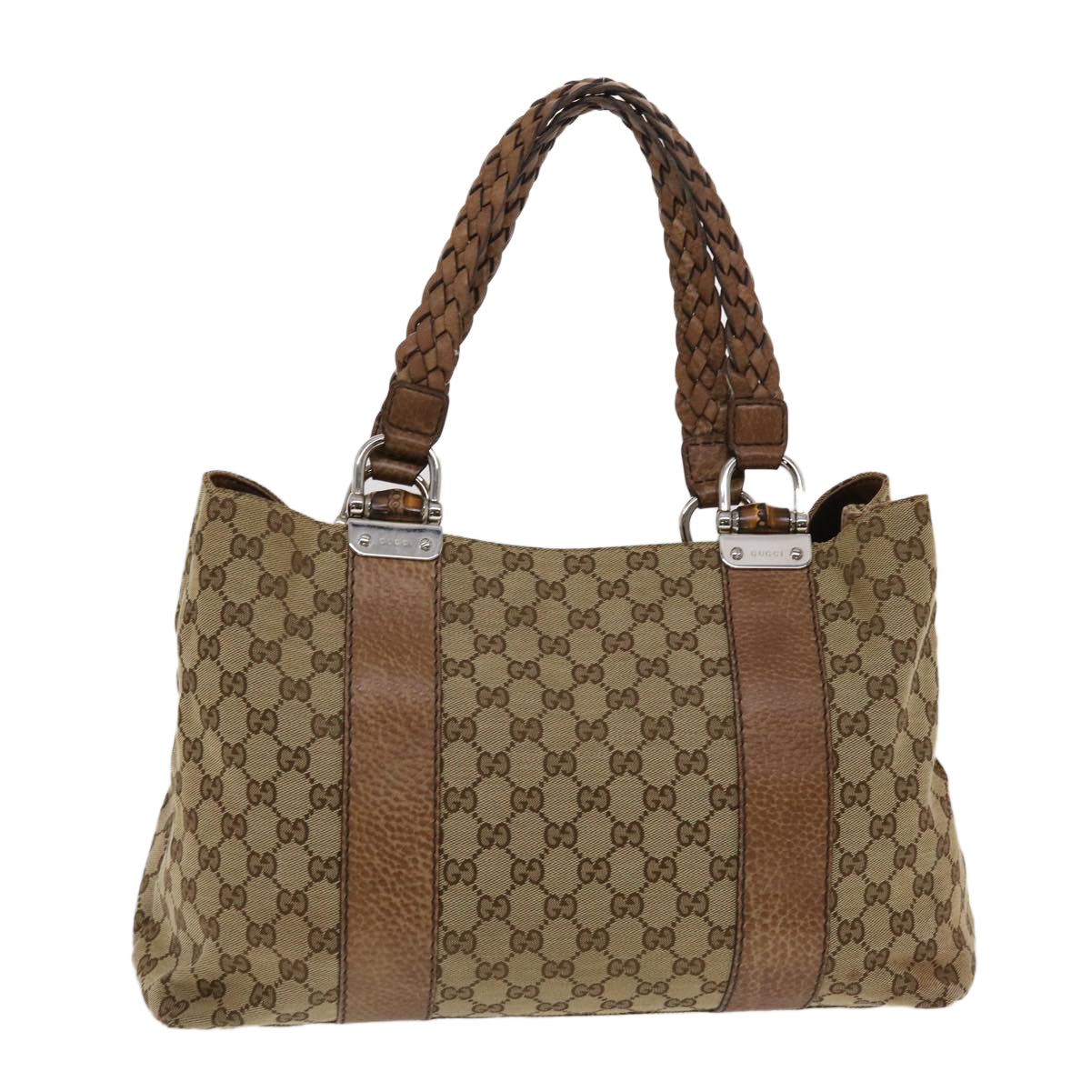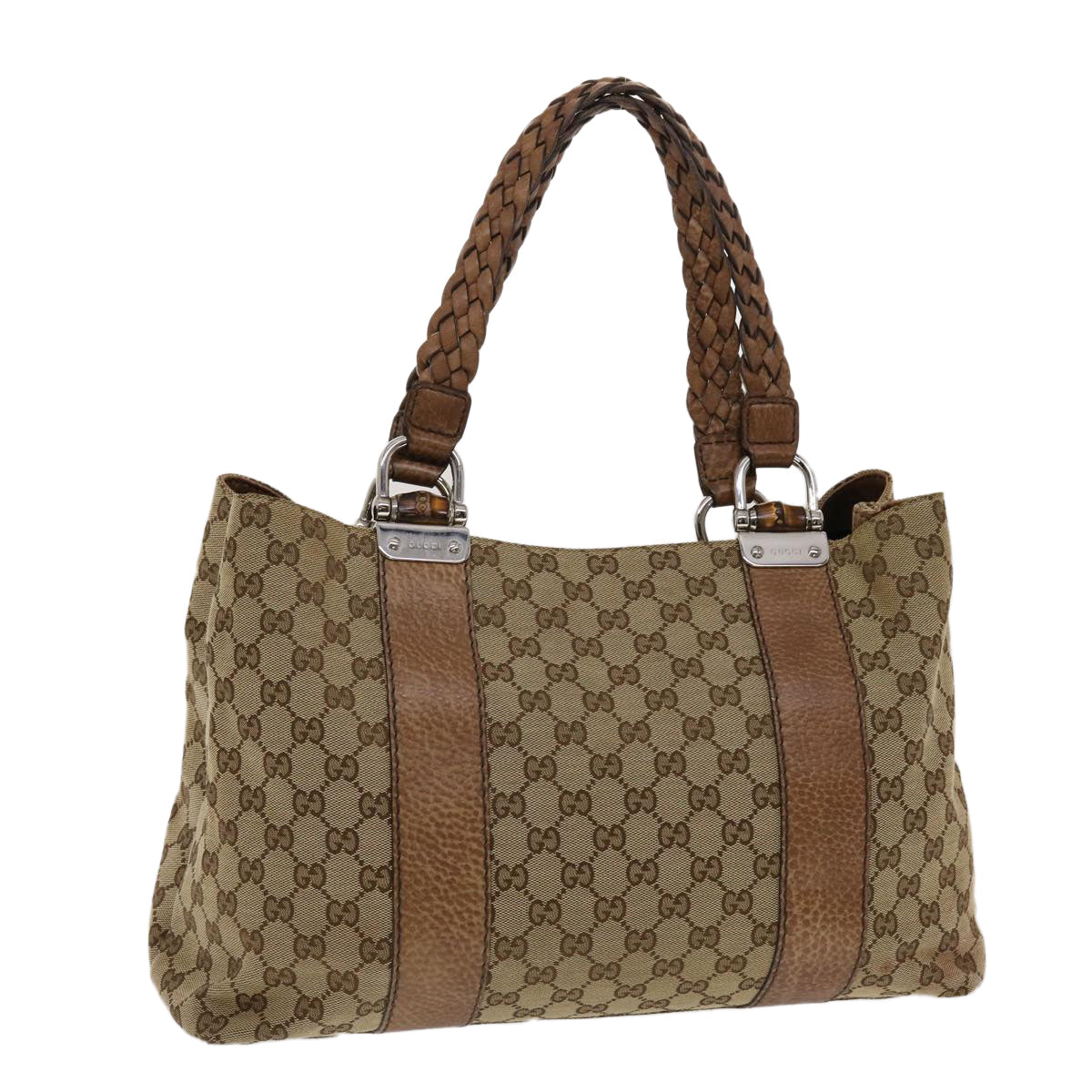 GUCCI GG Canvas Bamboo Tote Bag Beige Brown 49058