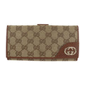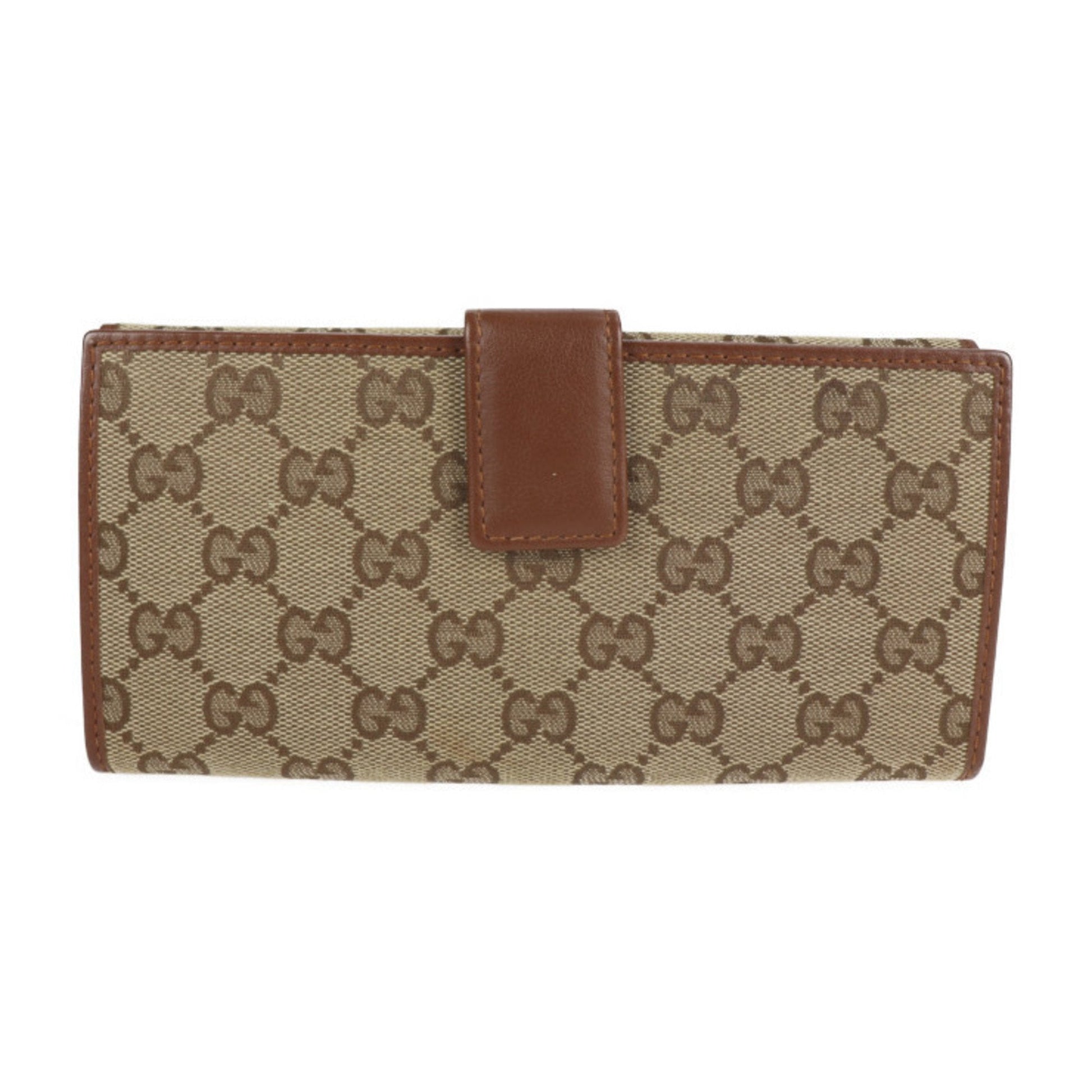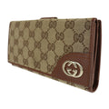 Gucci GG canvas bi-fold wallet 181593 leather brown gold metal fittings W hook long