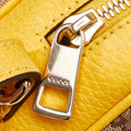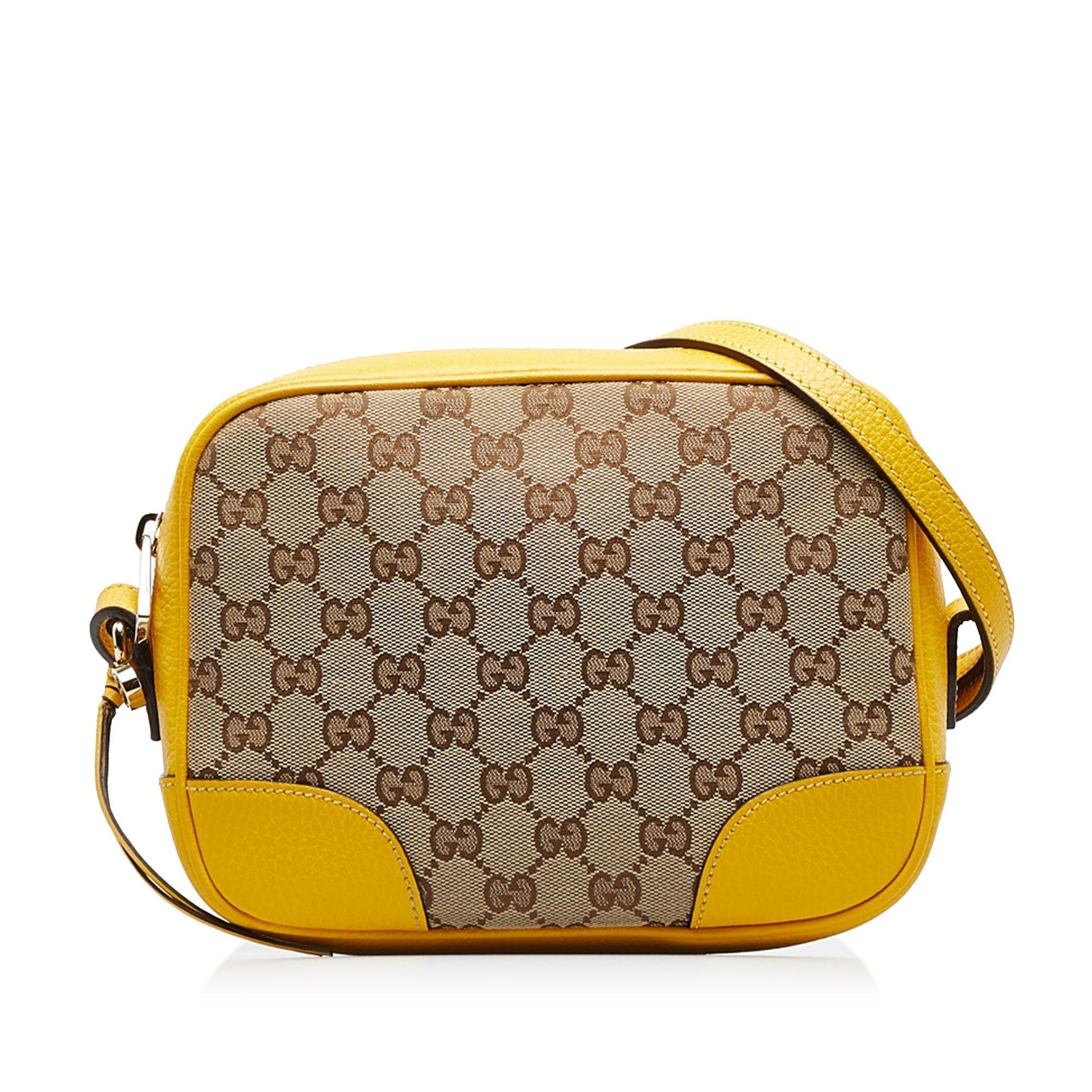 The Bree features a canvas body with leather trim, an adjustable flat leather shoulder strap, a top zip closure, and interior slip pockets.
