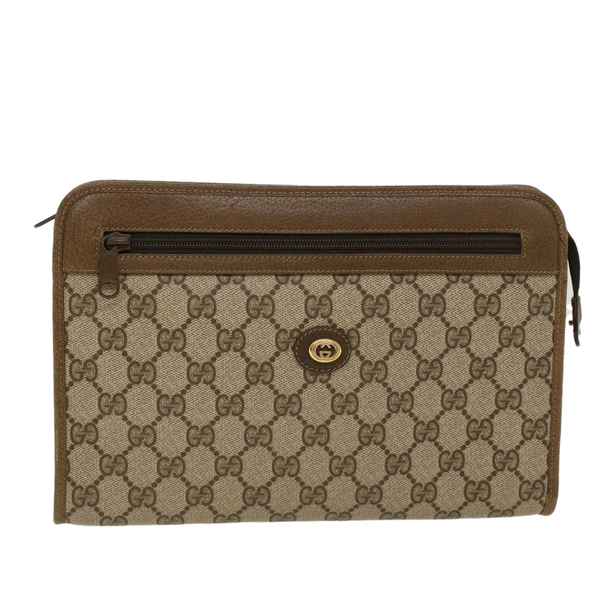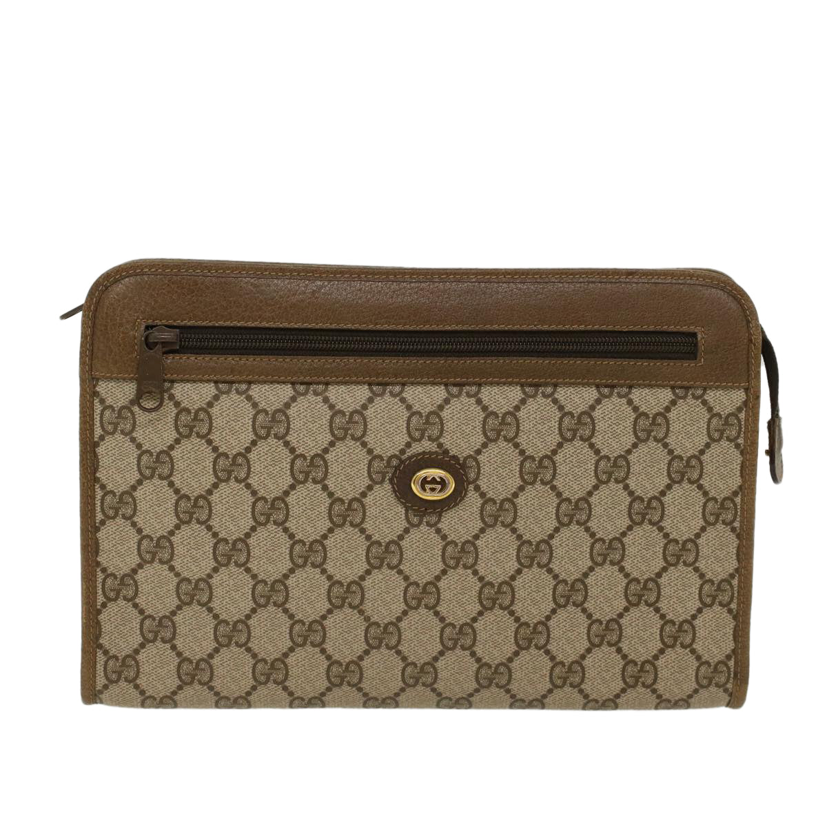 GUCCI GG Canvas Clutch Bag PVC Leather Beige 97.01.037 ki3062