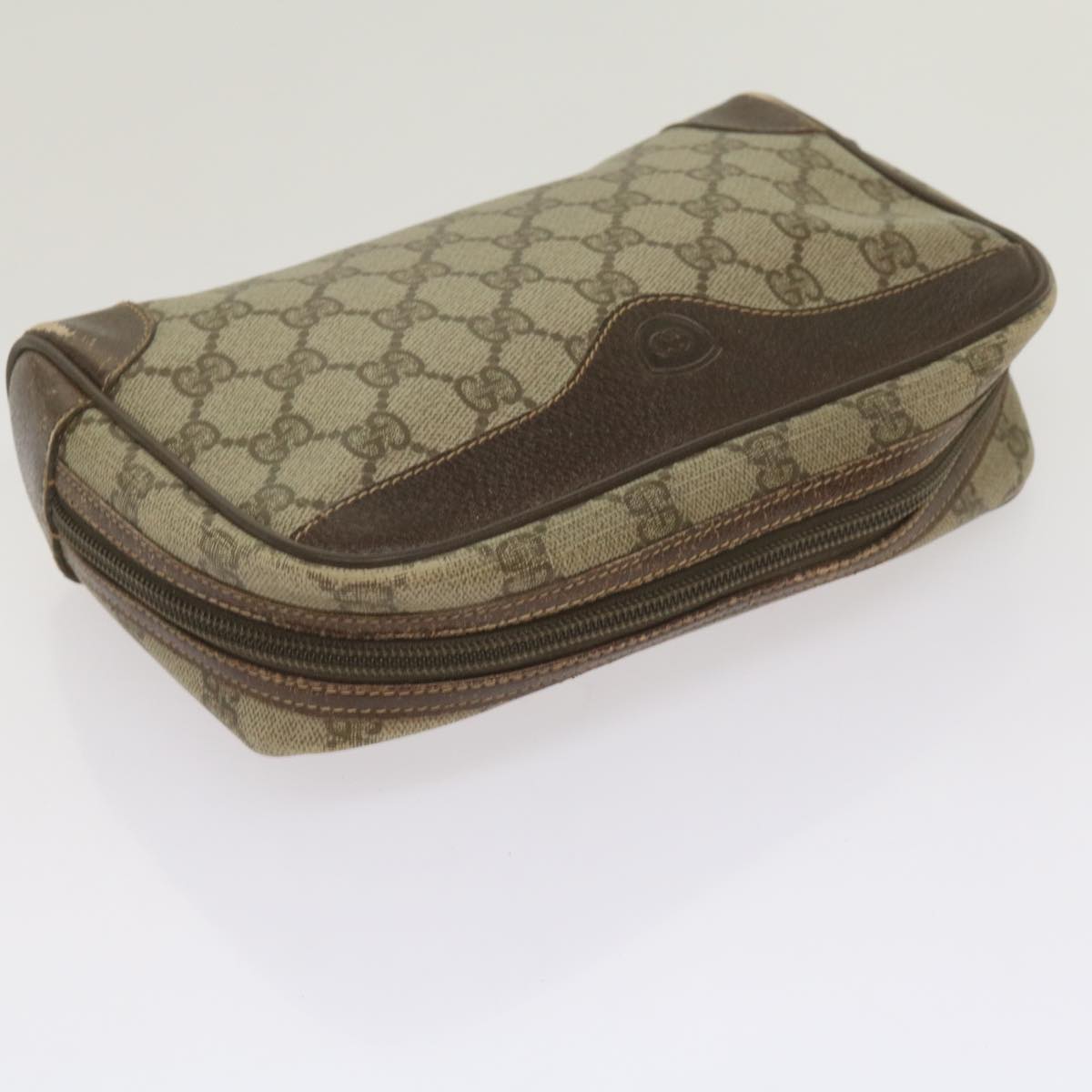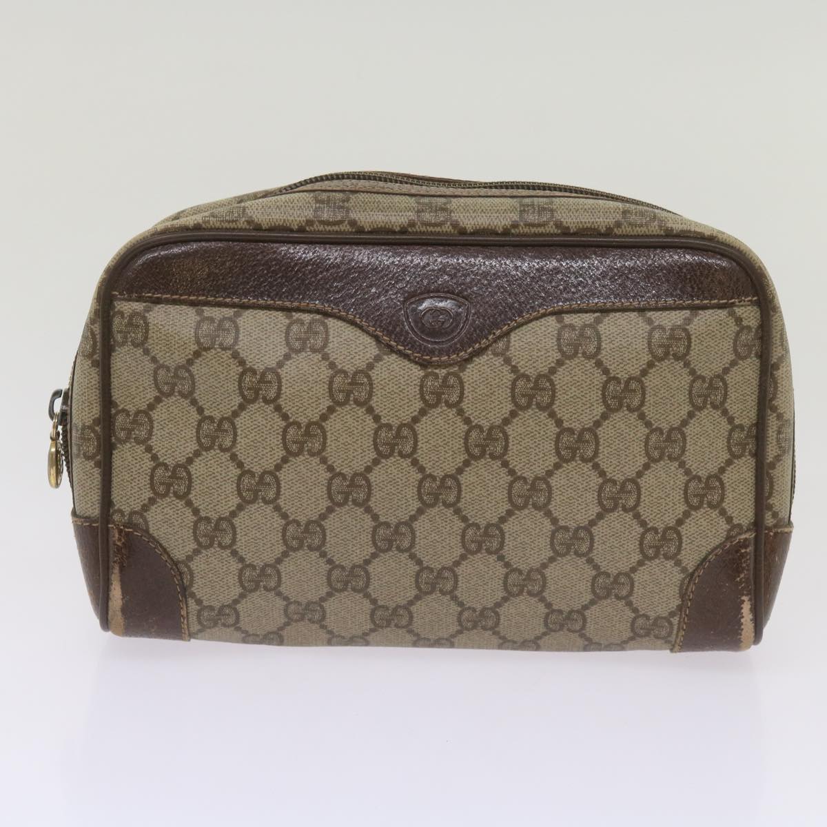GUCCI GG Canvas Clutch Shoulder Bag PVC 2Set Beige Auth bs12335