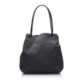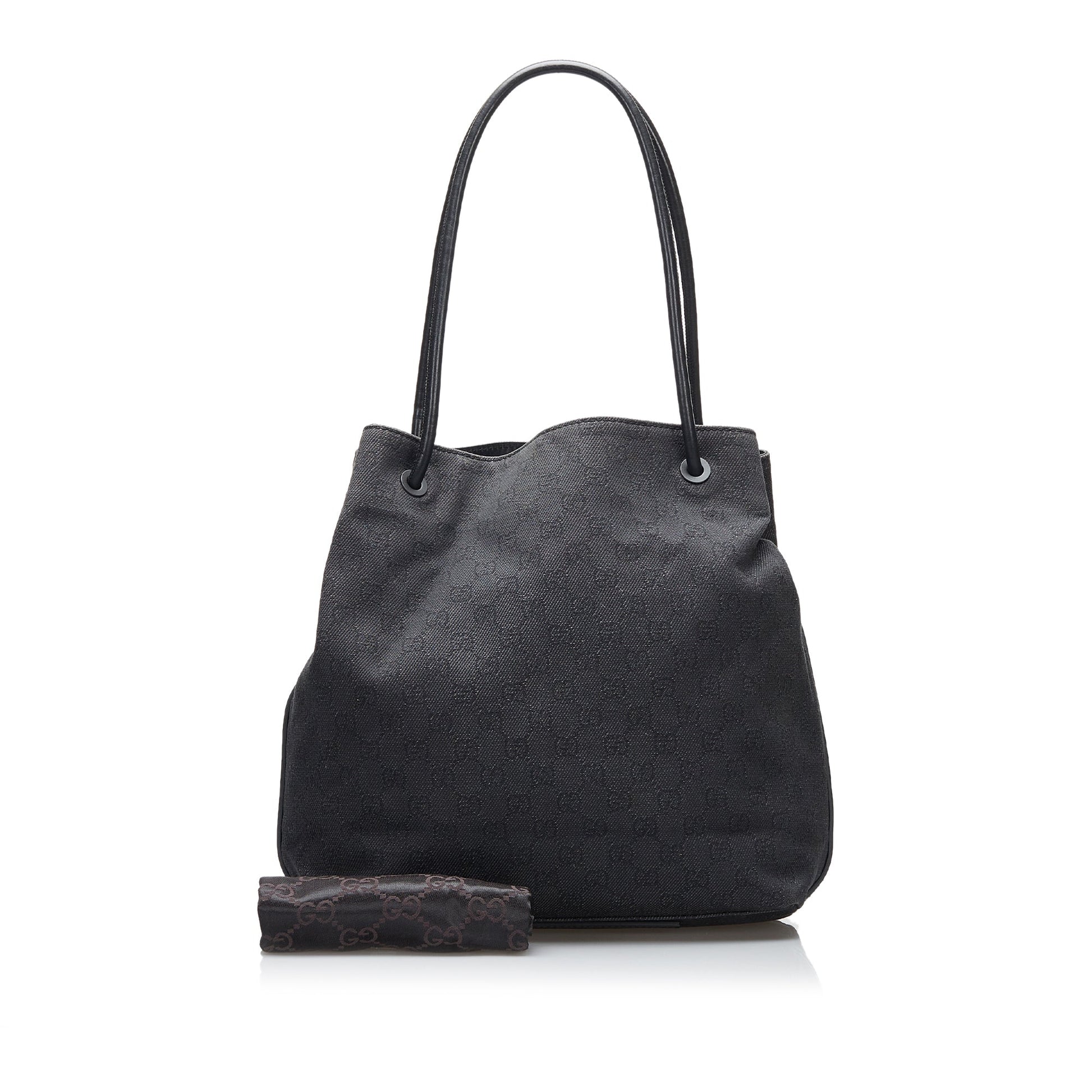 The Gifford tote bag features a canvas body with leather trim, rolled leather straps, an open top with a magnetic closure, and an interior zip pocket. Comes with dust bag
