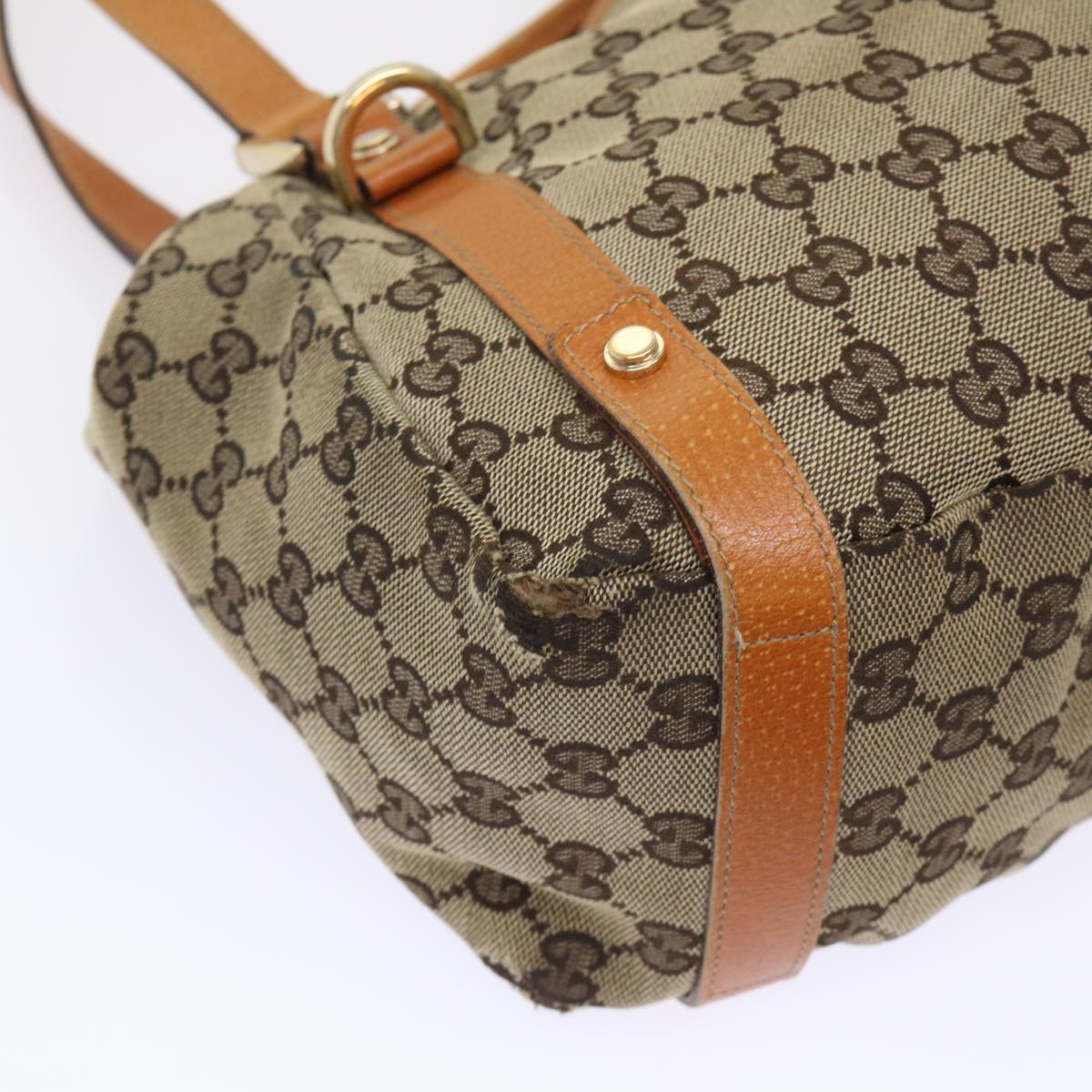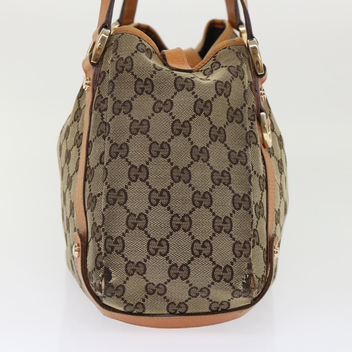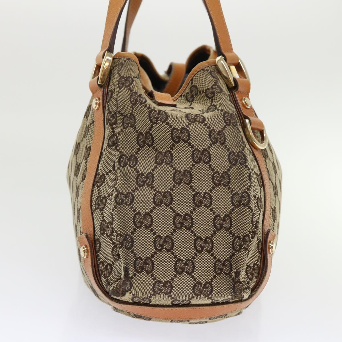 GUCCI GG Canvas Hand Bag Leather Brown 48449