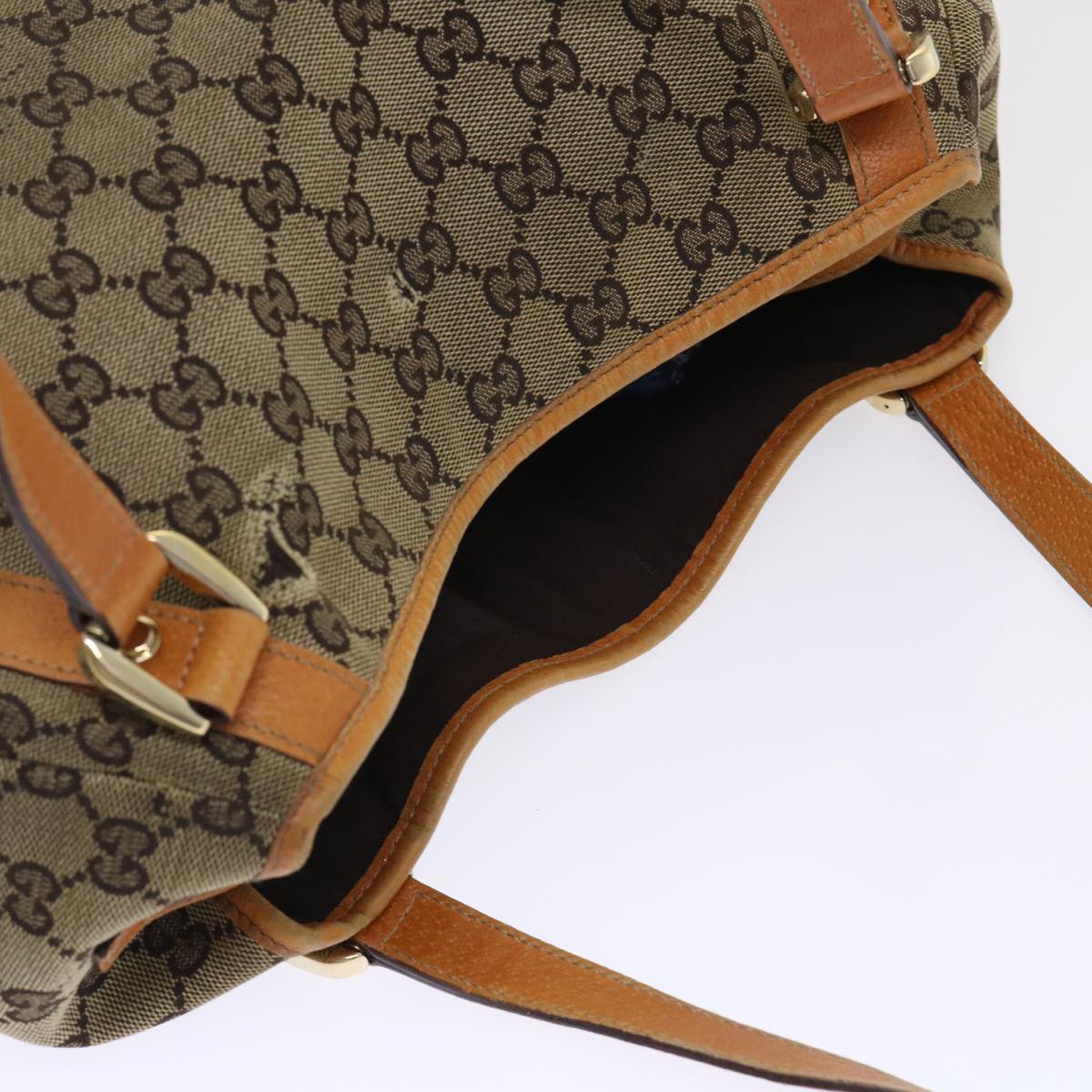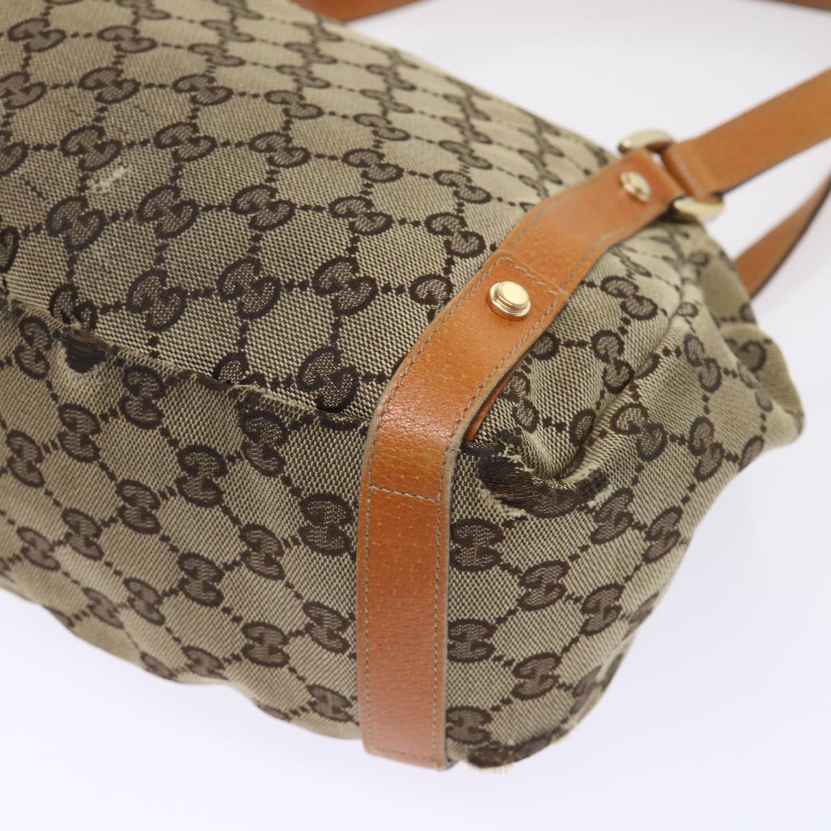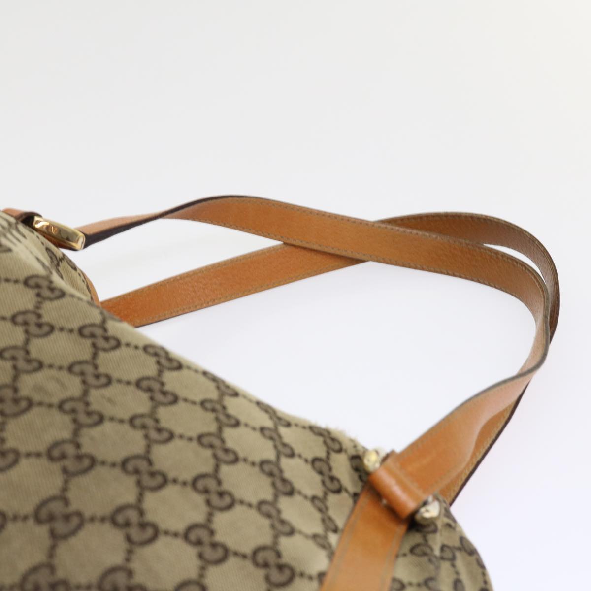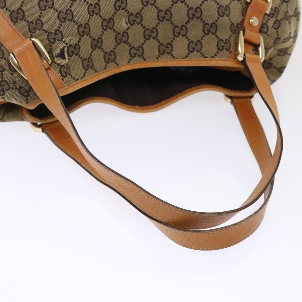 GUCCI GG Canvas Hand Bag Leather Brown 48449