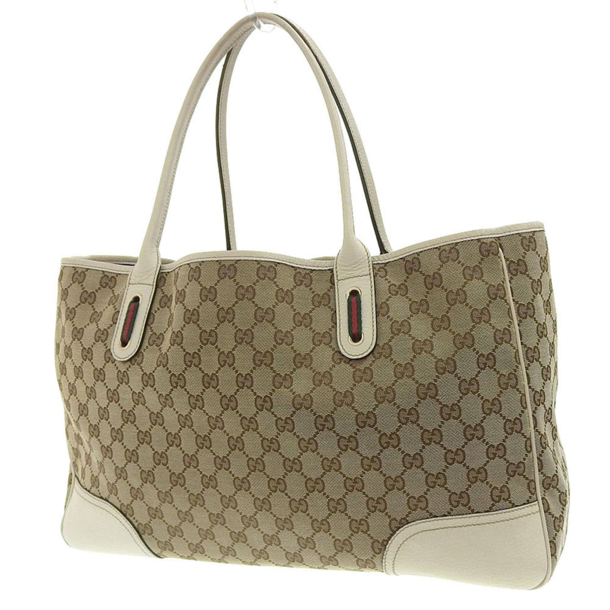 Gucci GG Canvas Princie Tote Bag Handbag Sherry Line Ribbon Leather Brown x Beige 161719 204046