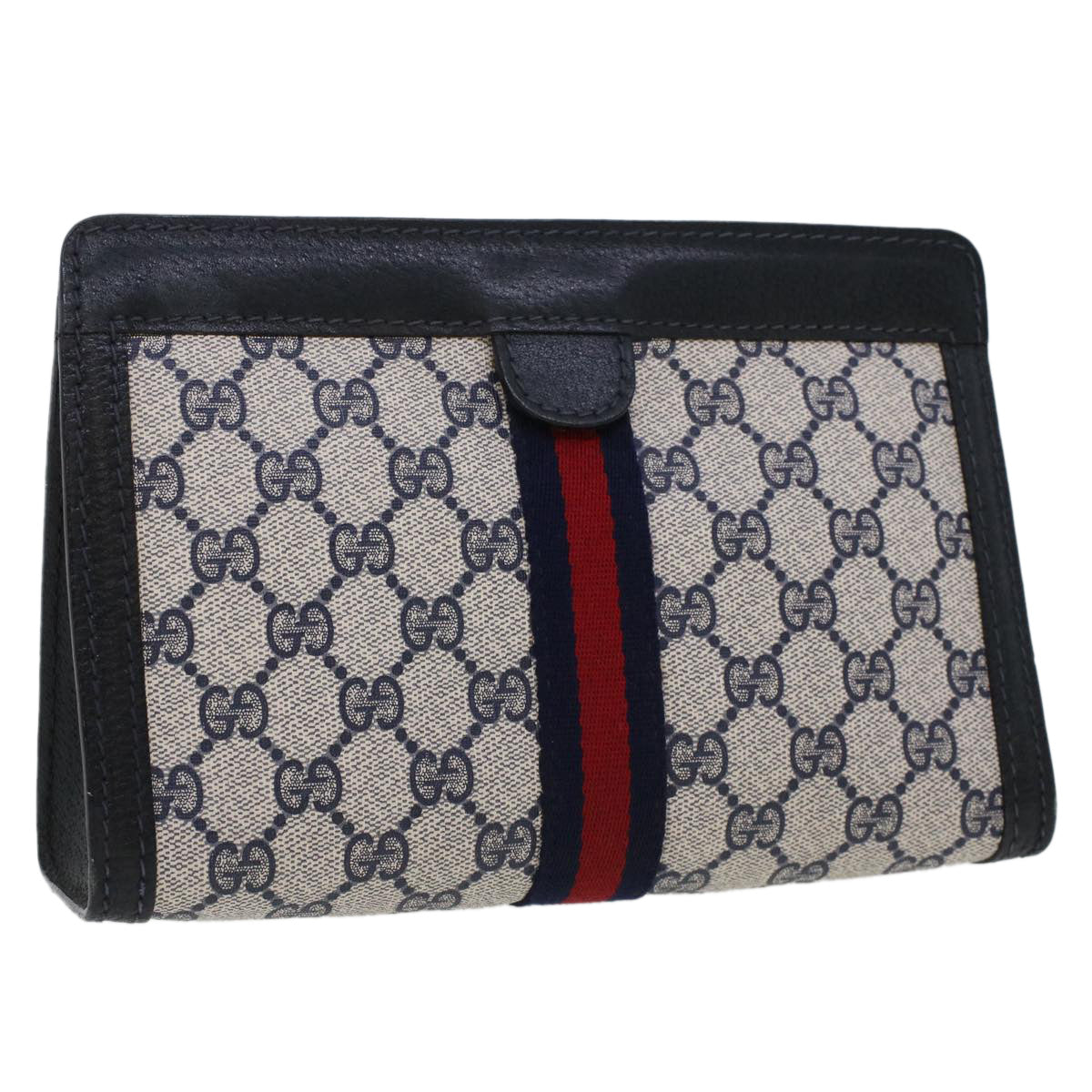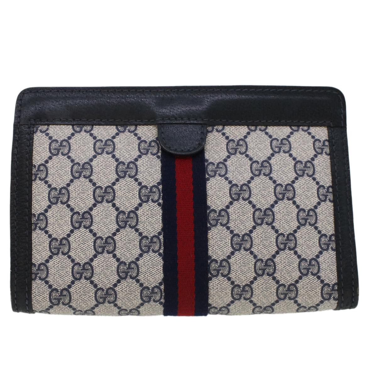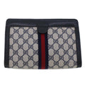 GUCCI GG Canvas Sherry Line Clutch Bag Gray Red Navy 64.014.2125.23 44752