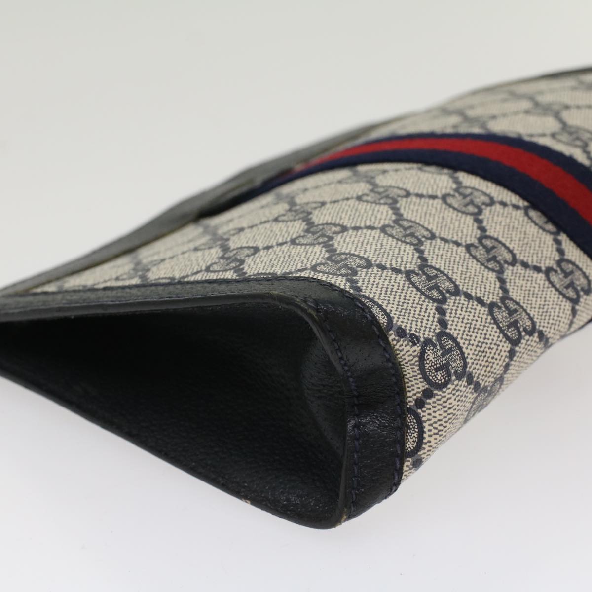 GUCCI GG Canvas Sherry Line Clutch Bag PVC Leather Navy Red yk7860