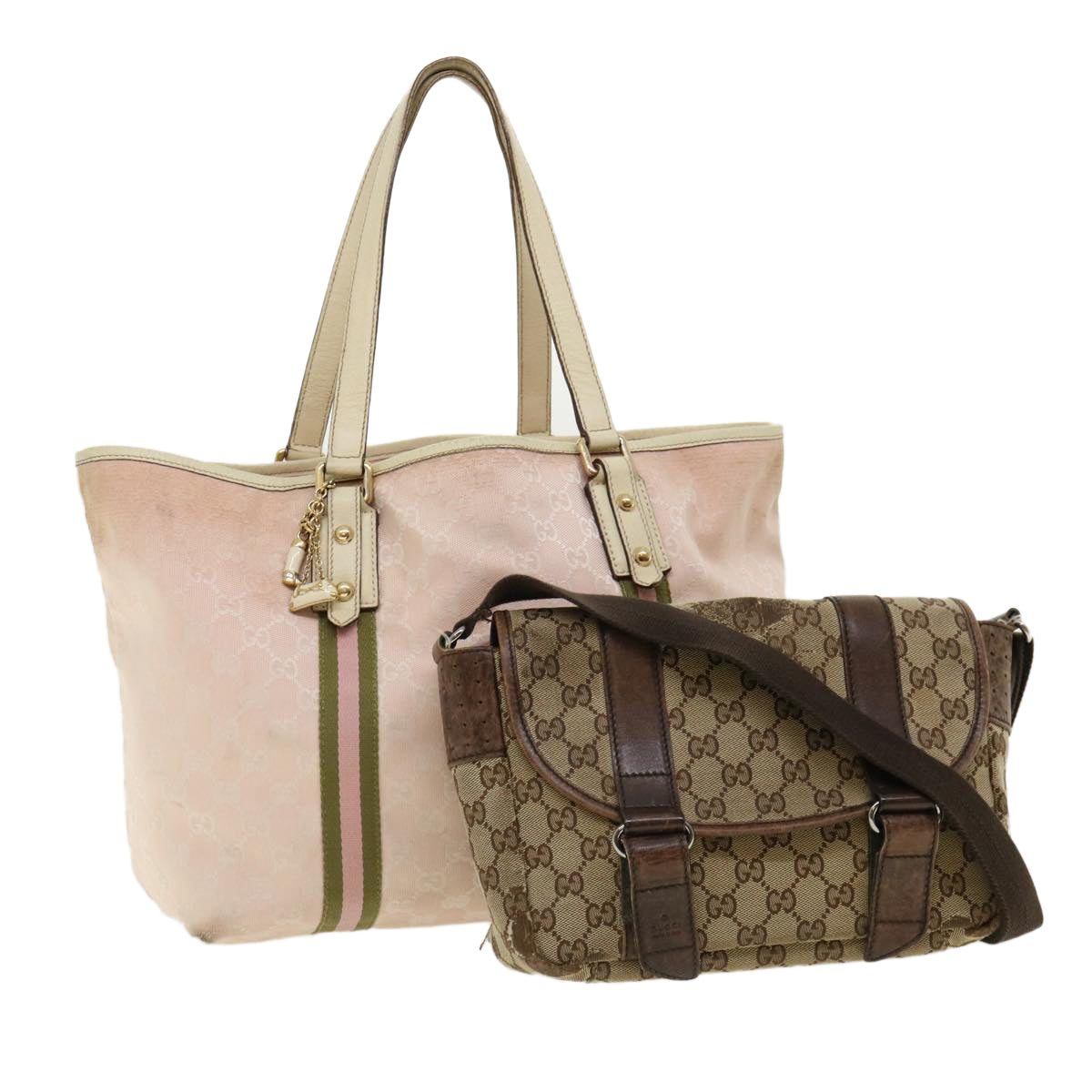GUCCI GG Canvas Sherry Line Shoulder Bag 2Set Pink Beige yk5006