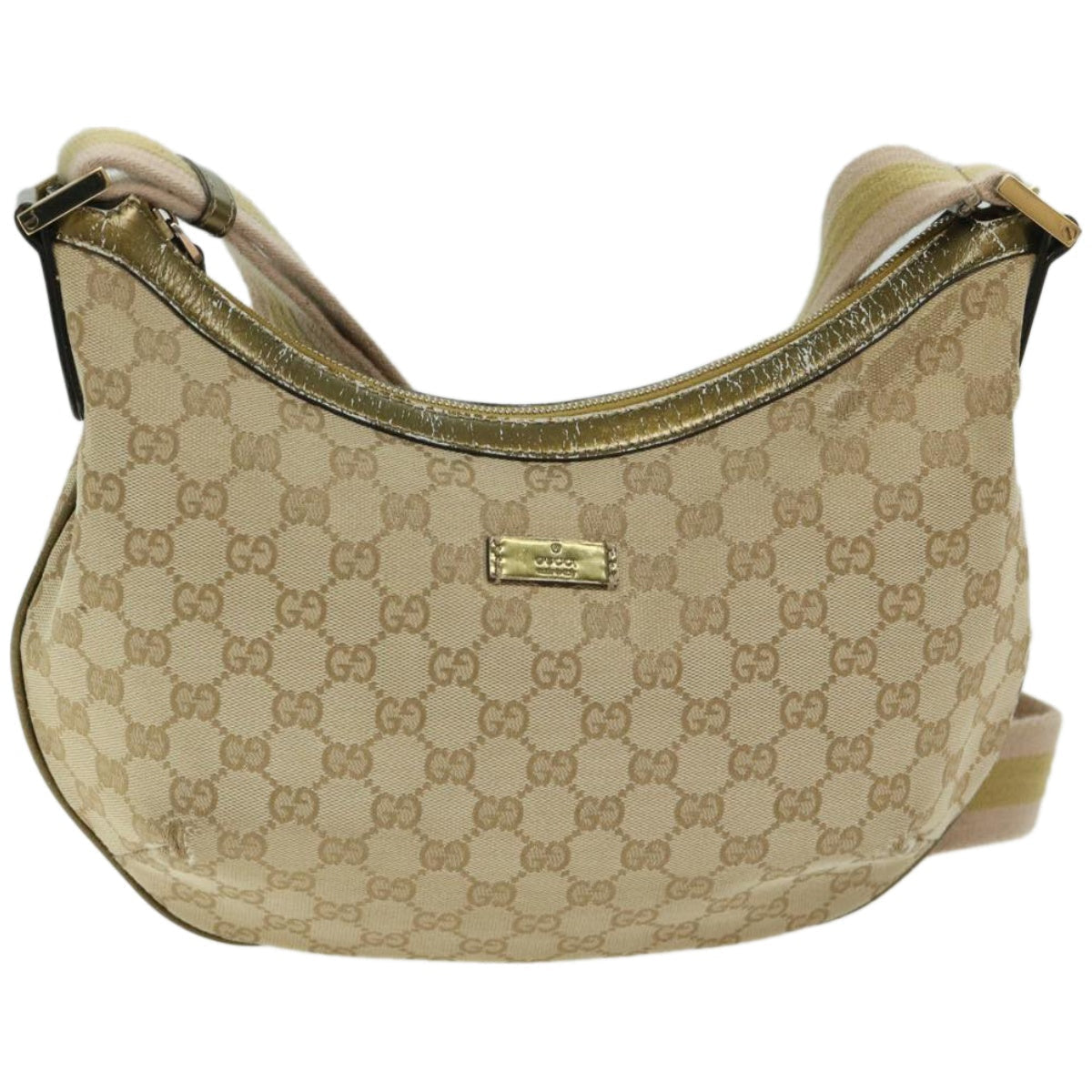 GUCCI GG Canvas Sherry Line Shoulder Bag Gold Beige pink 181092 Auth 67223