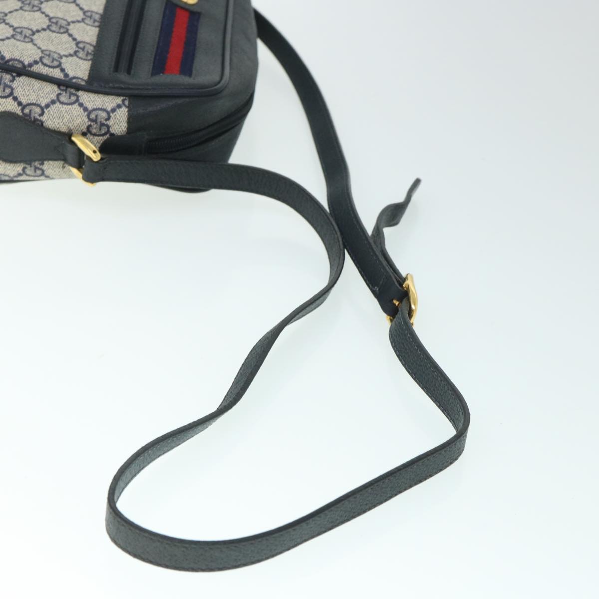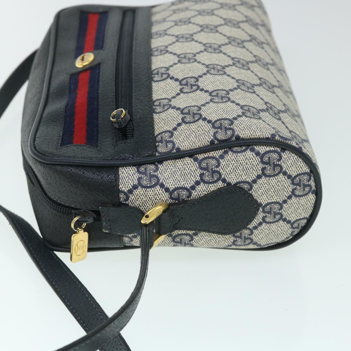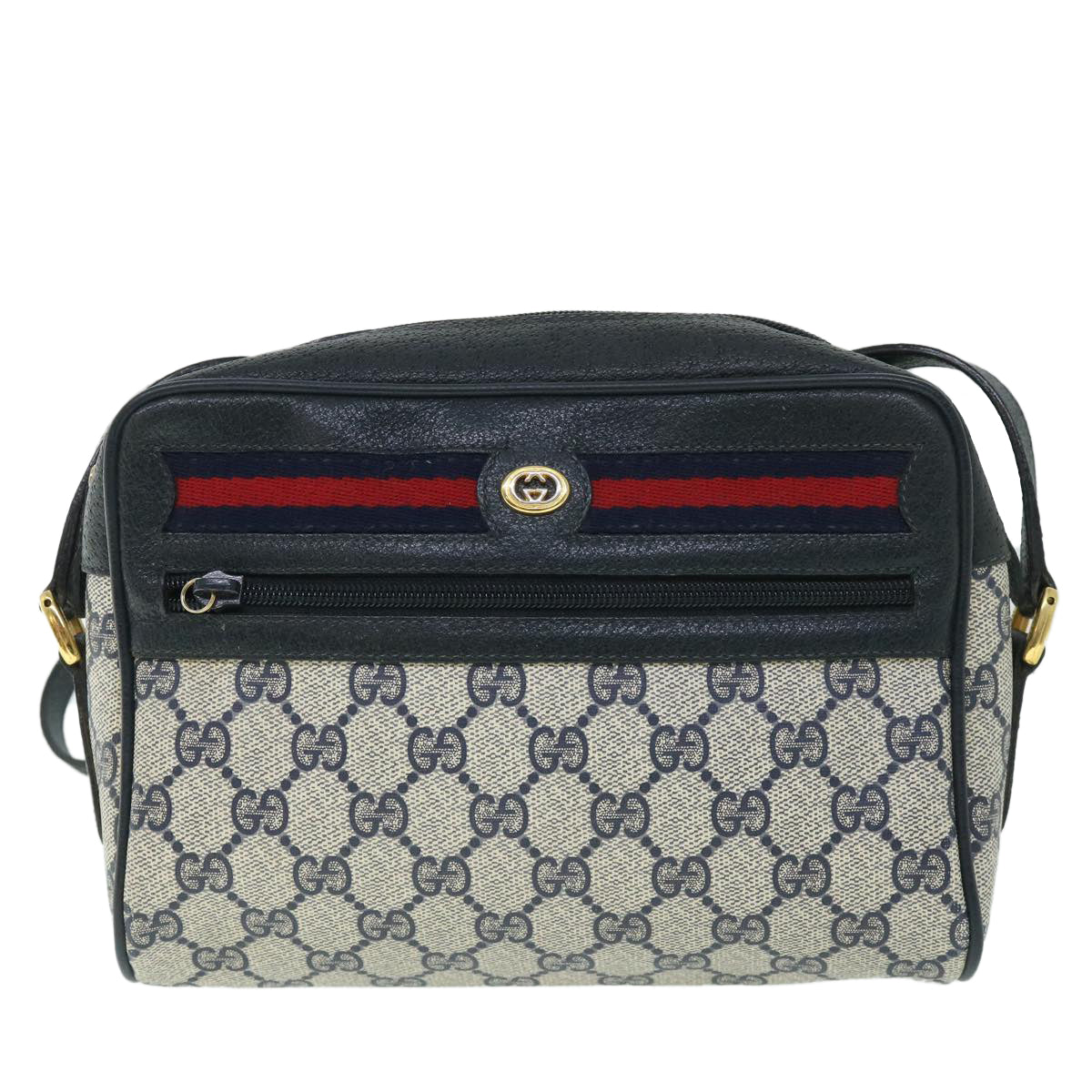 GUCCI GG Canvas Sherry Line Shoulder Bag Gray Red Navy 119.02.087 Auth 54792