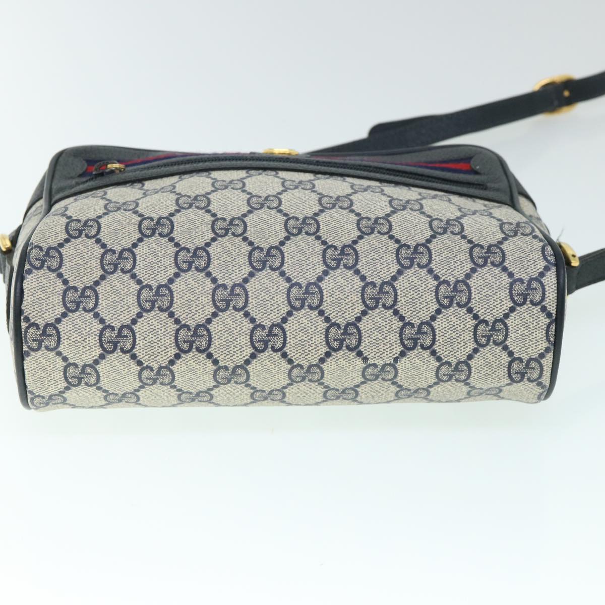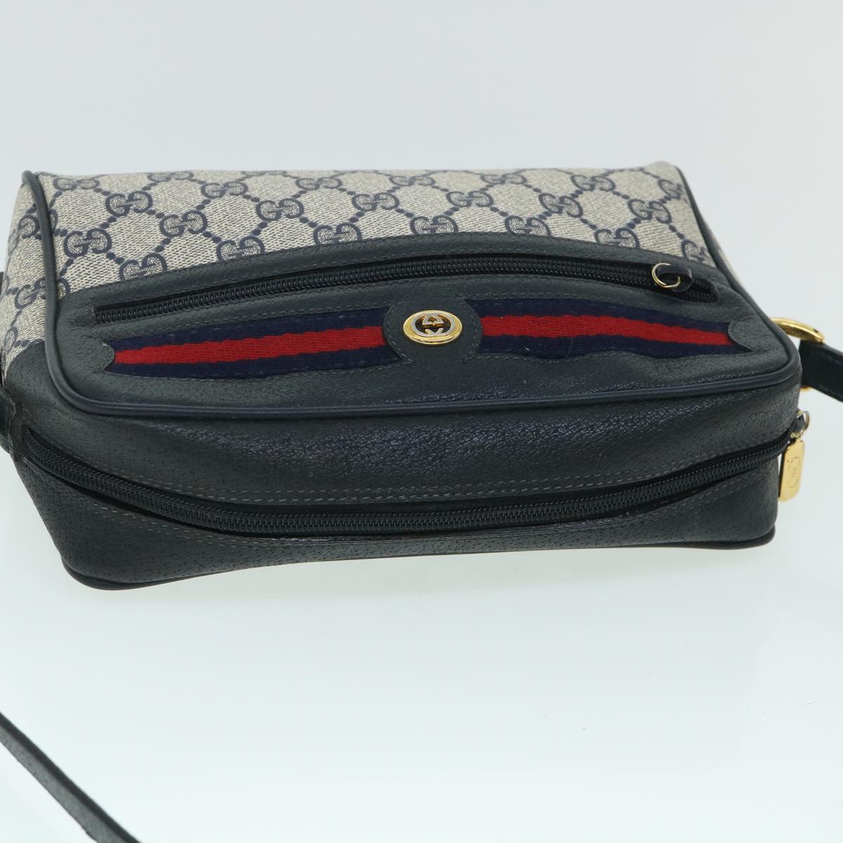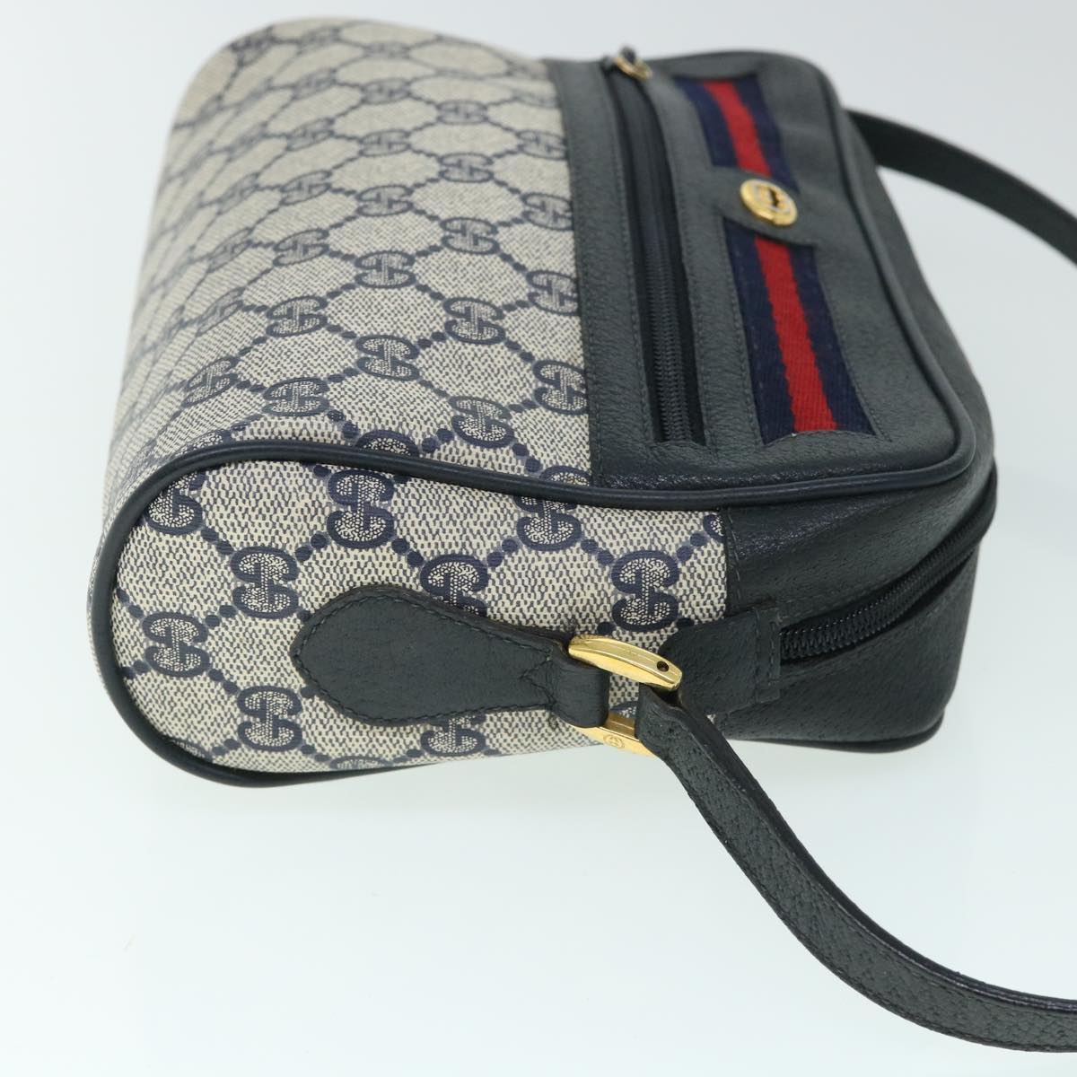GUCCI GG Canvas Sherry Line Shoulder Bag Gray Red Navy 119.02.087 Auth 54792