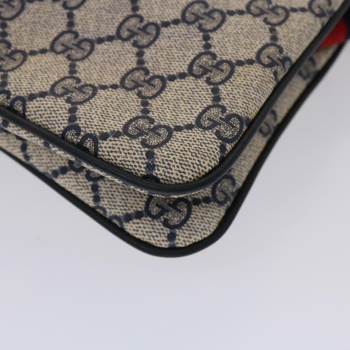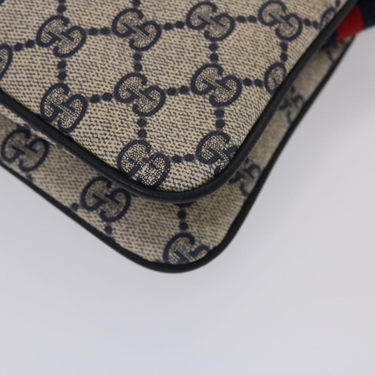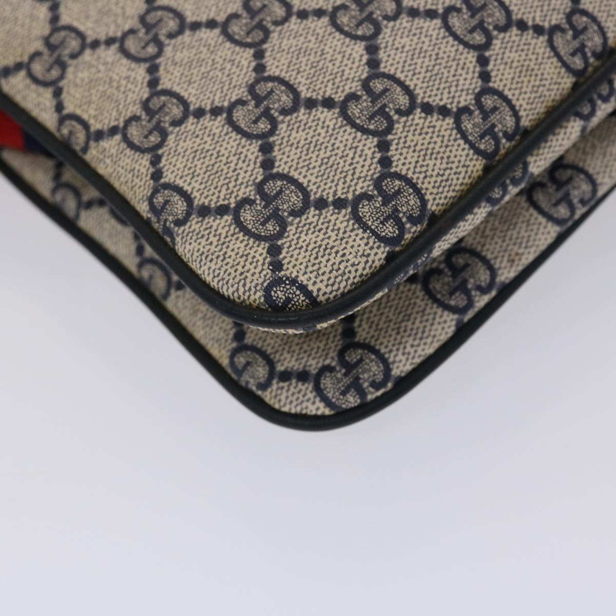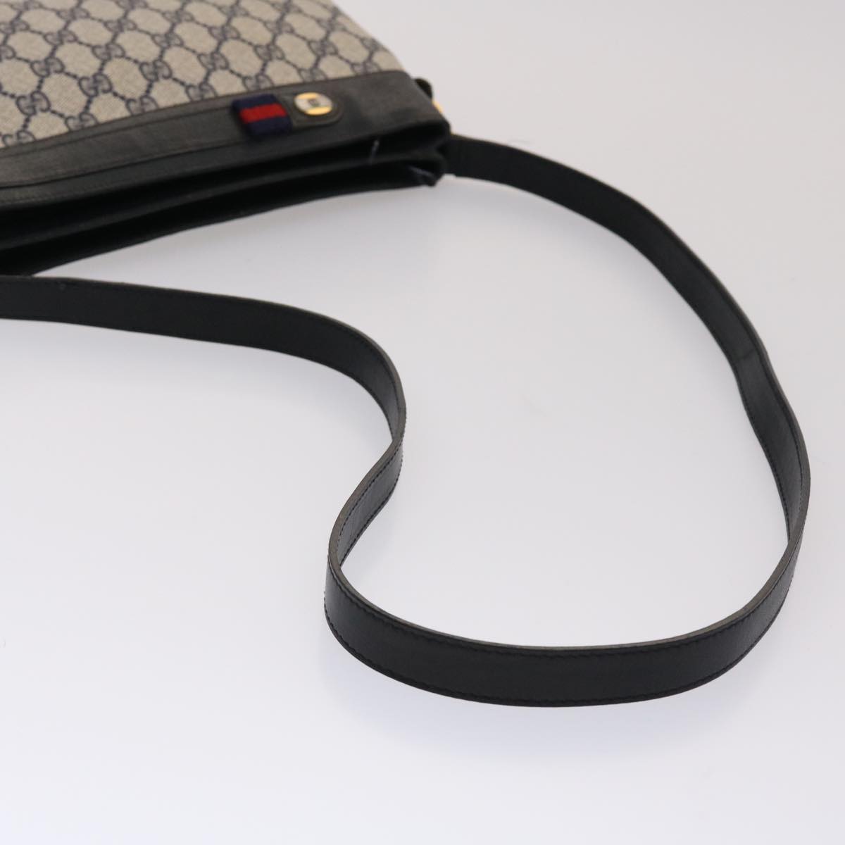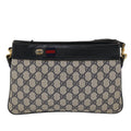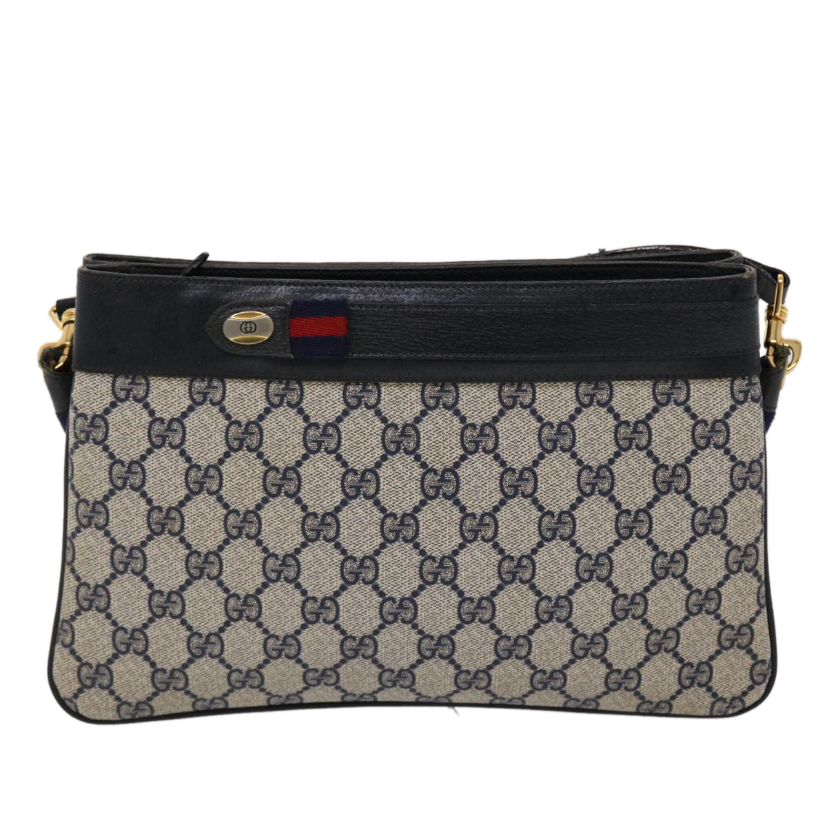 GUCCI GG Canvas Sherry Line Shoulder Bag Gray Red Navy 904.02.035... Auth 45948