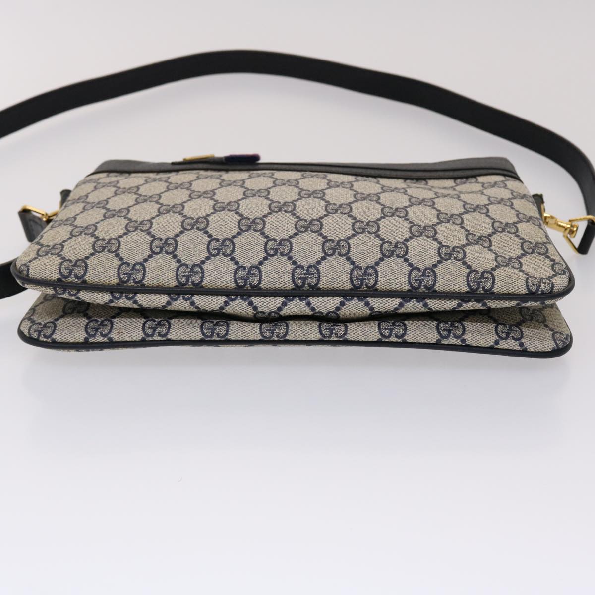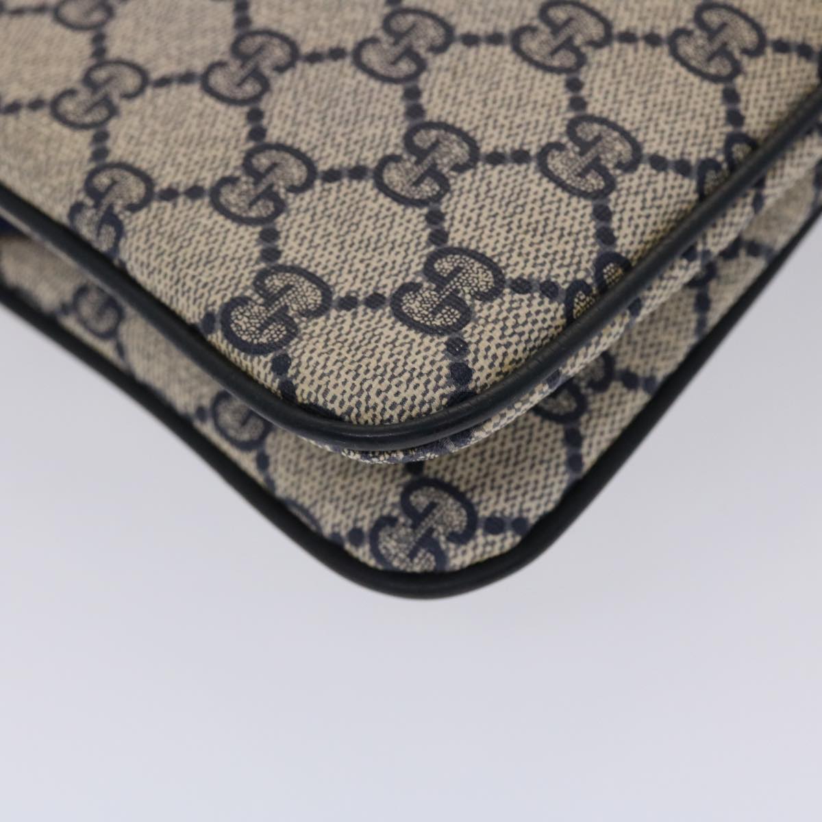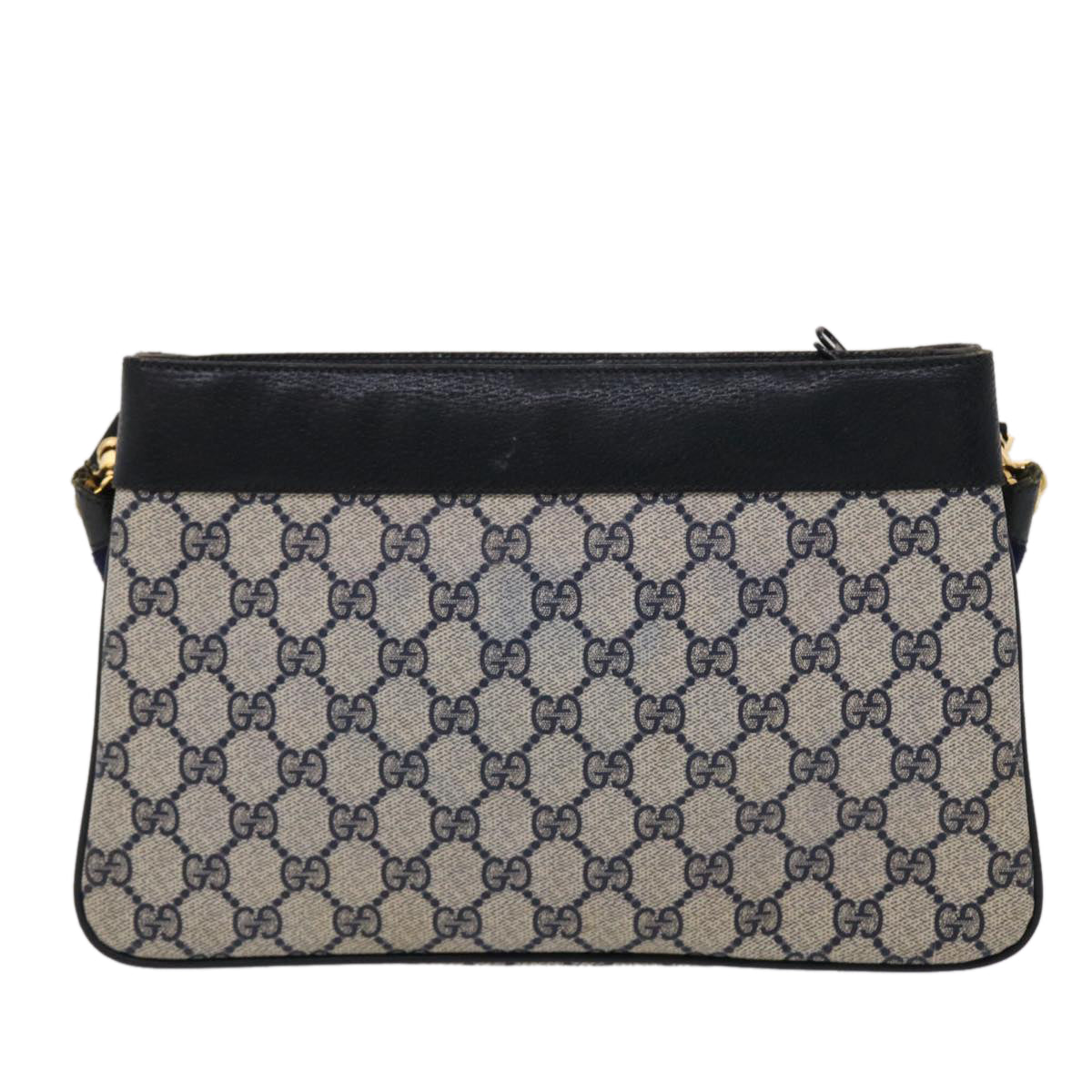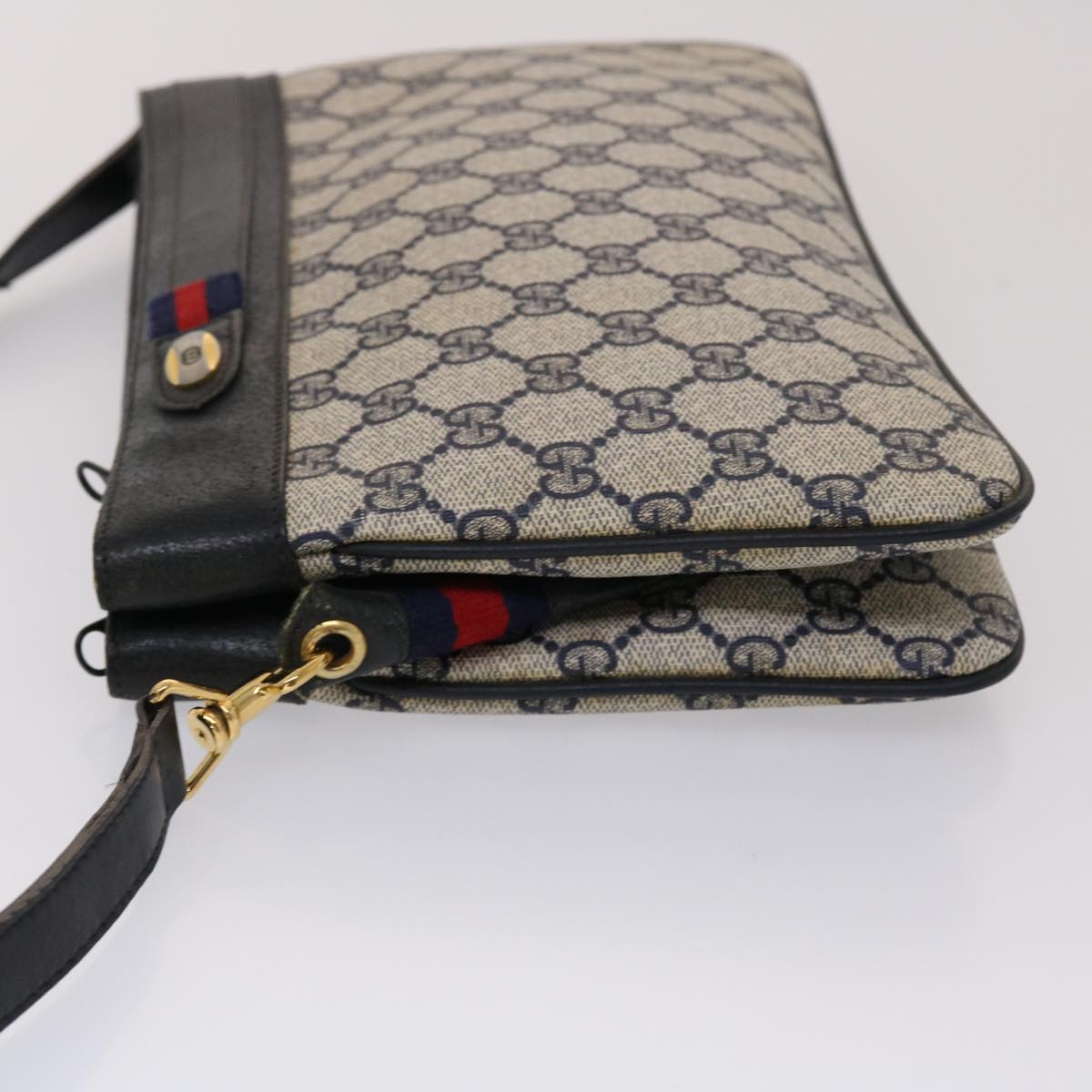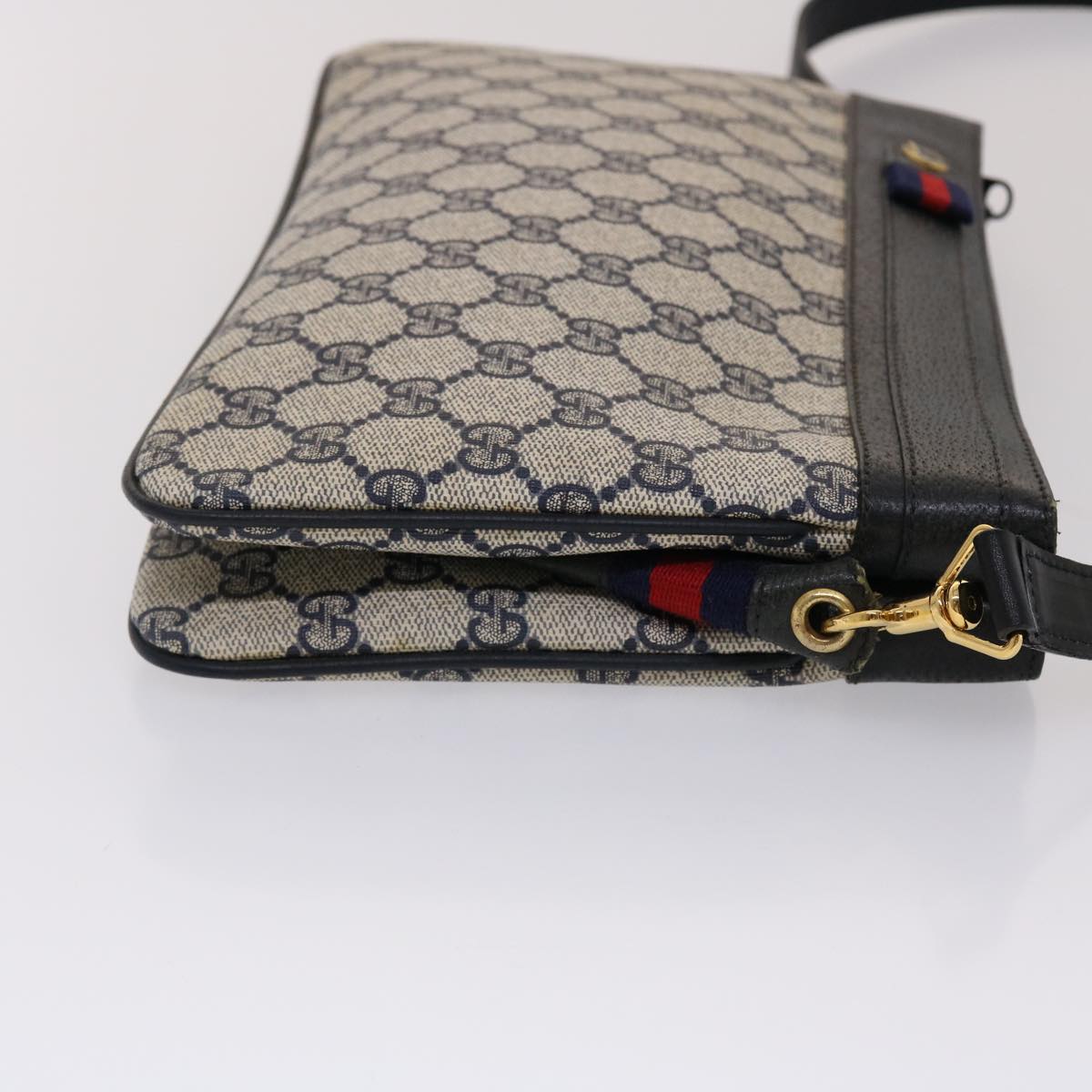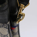 GUCCI GG Canvas Sherry Line Shoulder Bag Gray Red Navy 904.02.035... Auth 45948