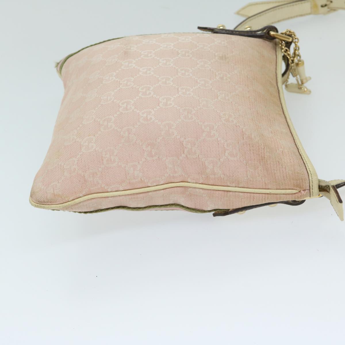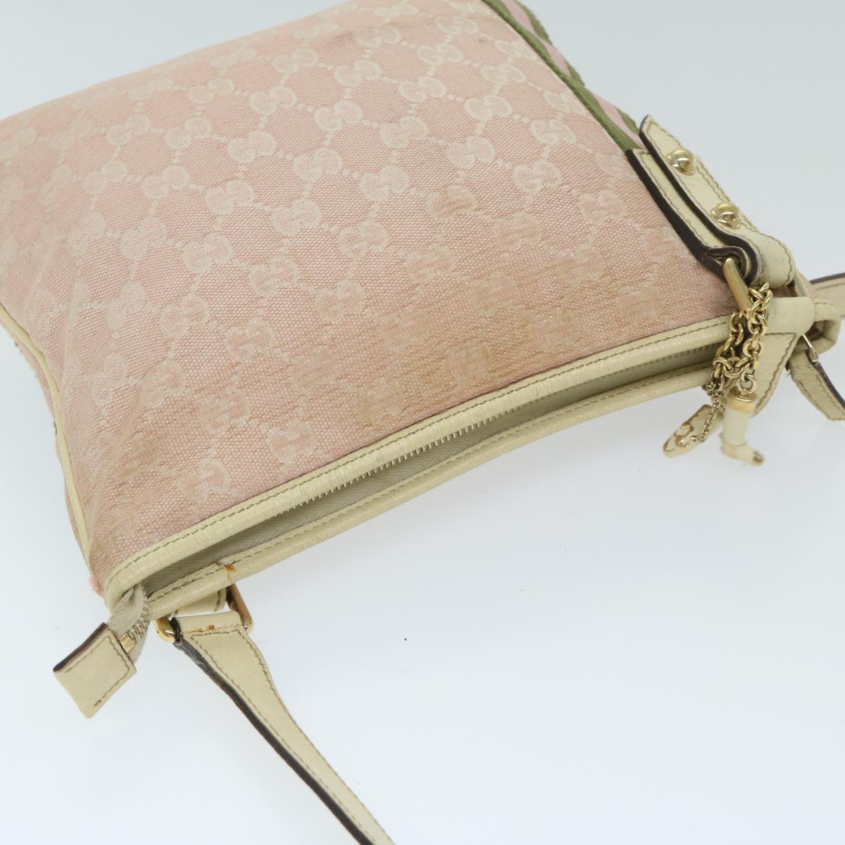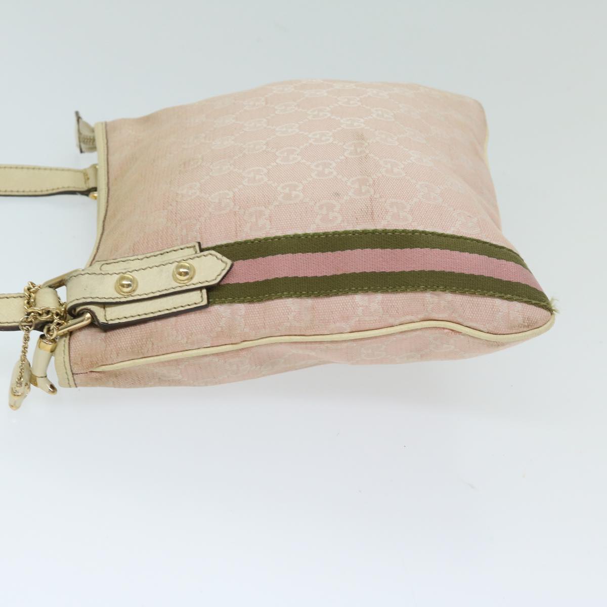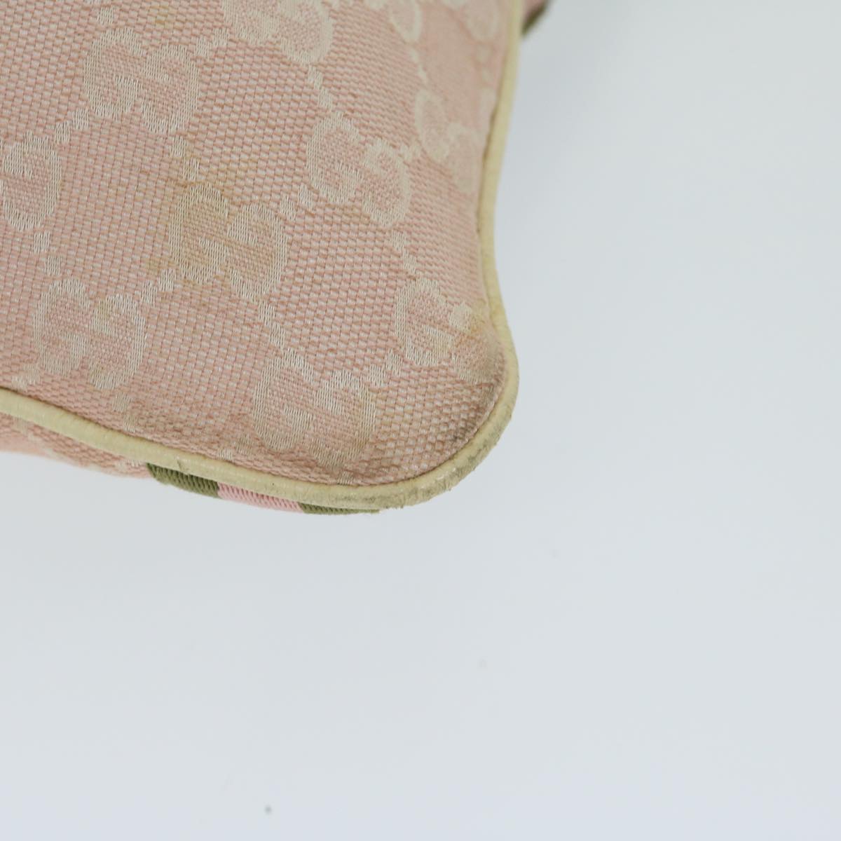 GUCCI GG Canvas Sherry Line Shoulder Bag Khaki Pink 144388 Auth 69452