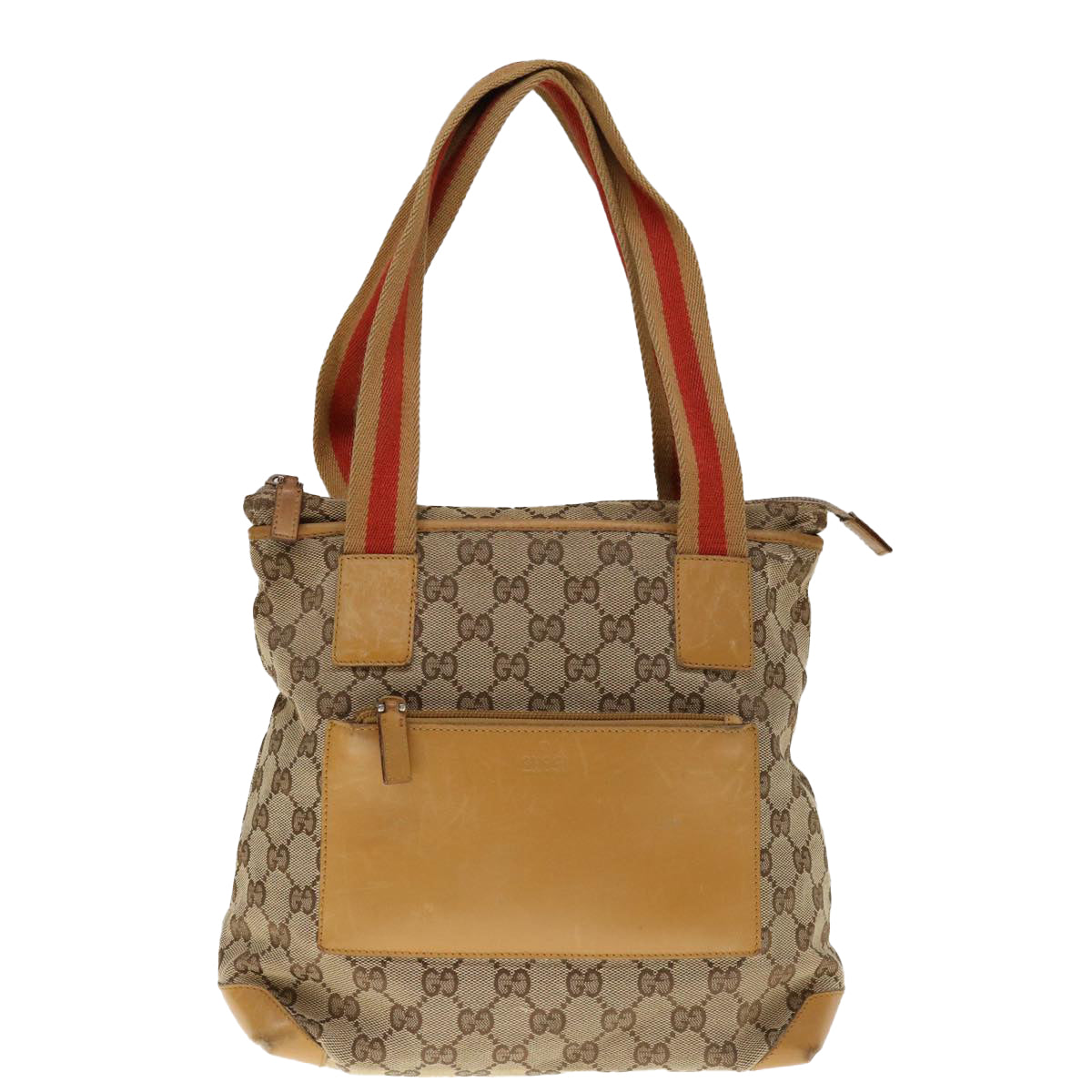 GUCCI GG Canvas Sherry Line Tote Bag Beige Orange 0190402 Auth 65970