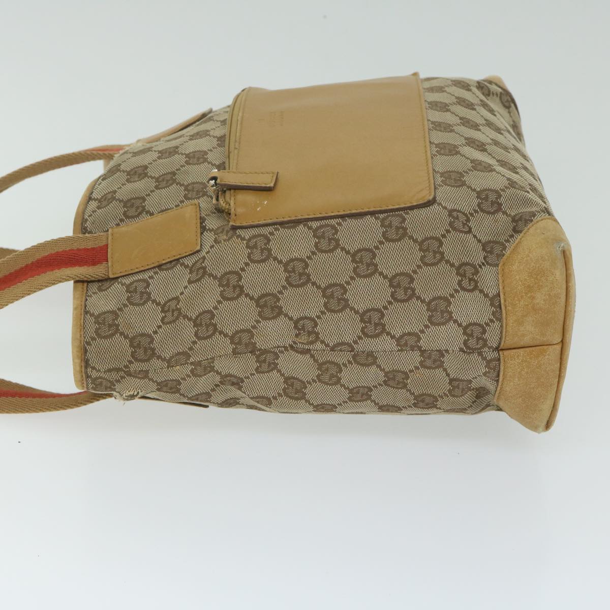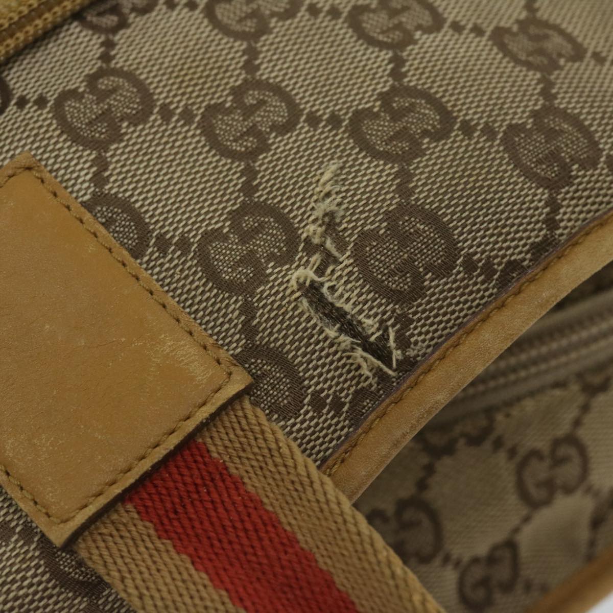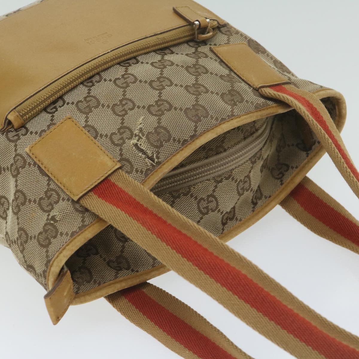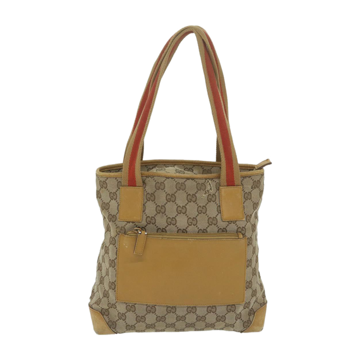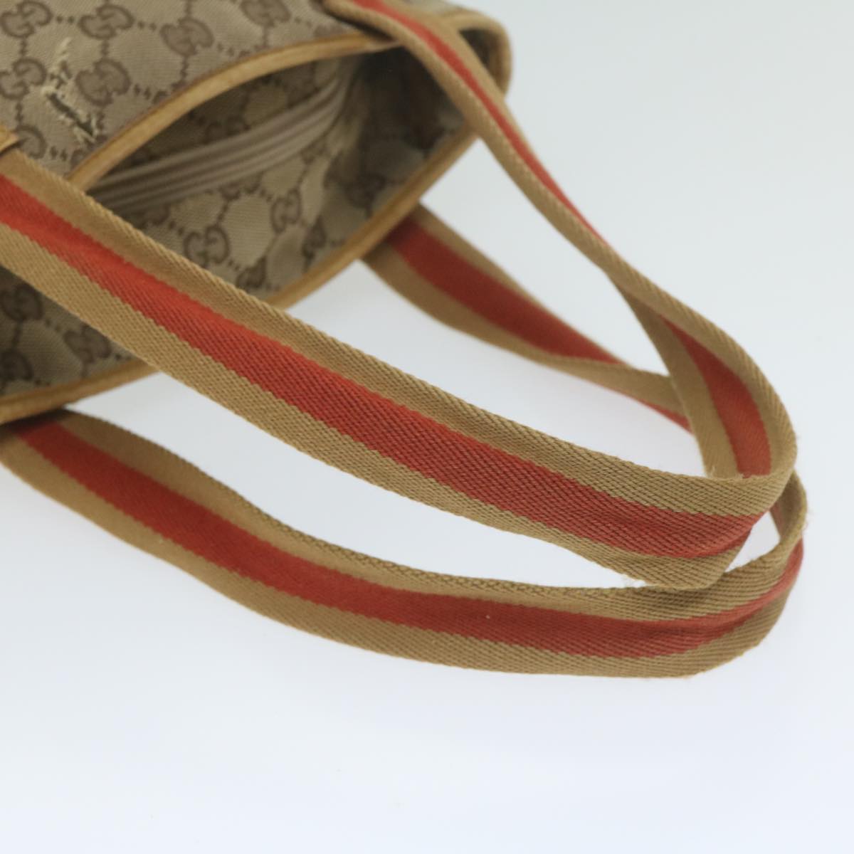 GUCCI GG Canvas Sherry Line Tote Bag Beige Orange Auth 64008