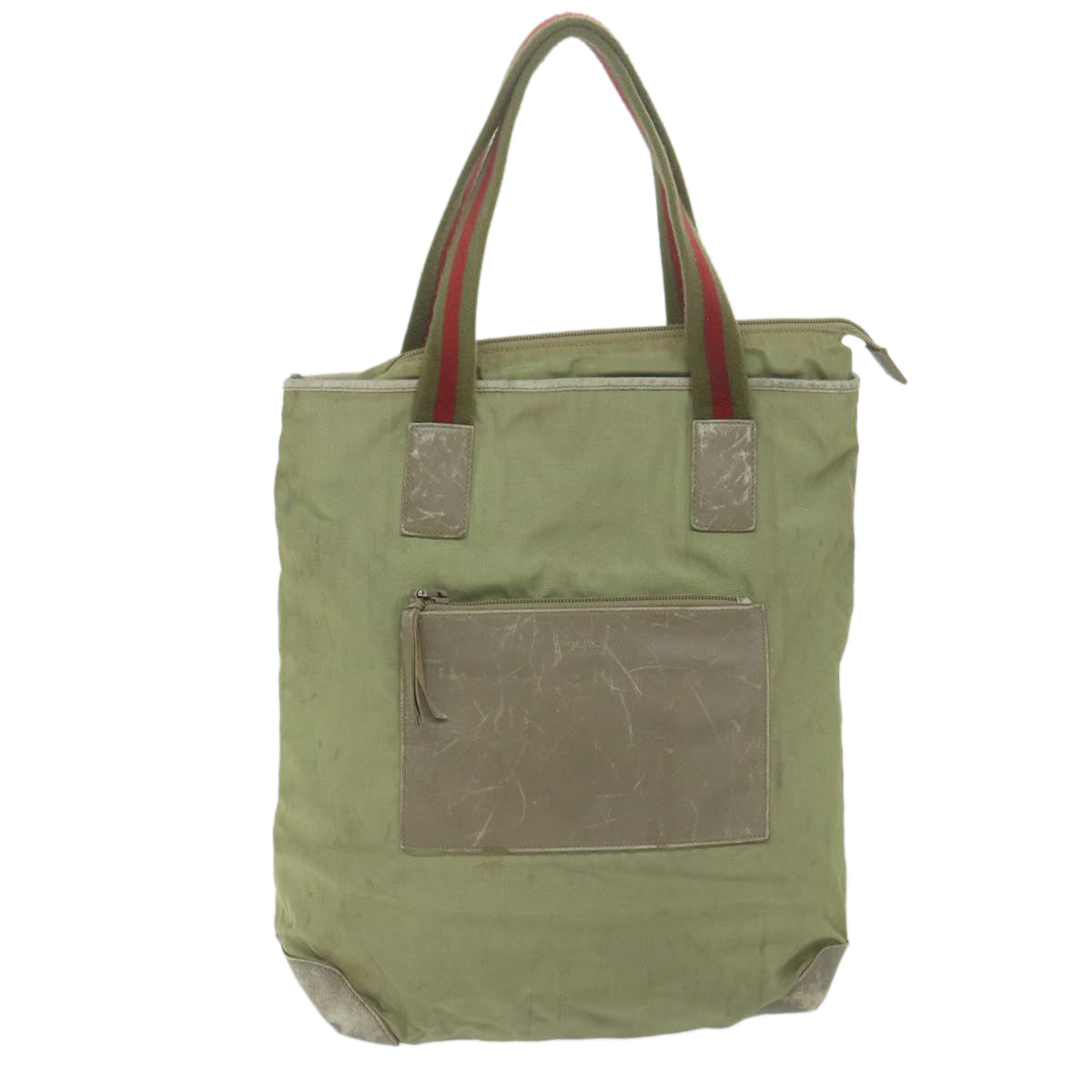 GUCCI GG Canvas Sherry Line Tote Bag Beige Red khaki 019 0401 Auth 64642
