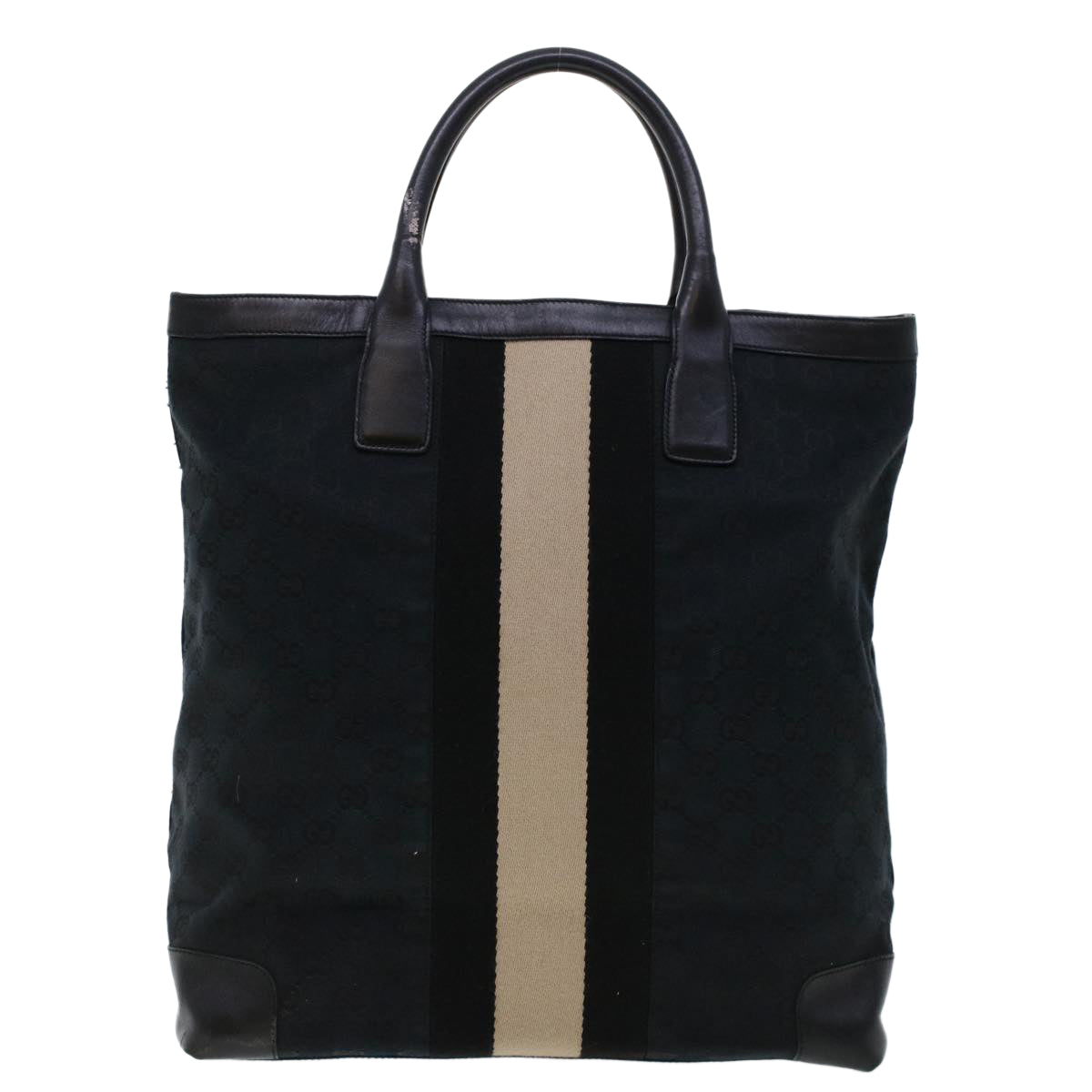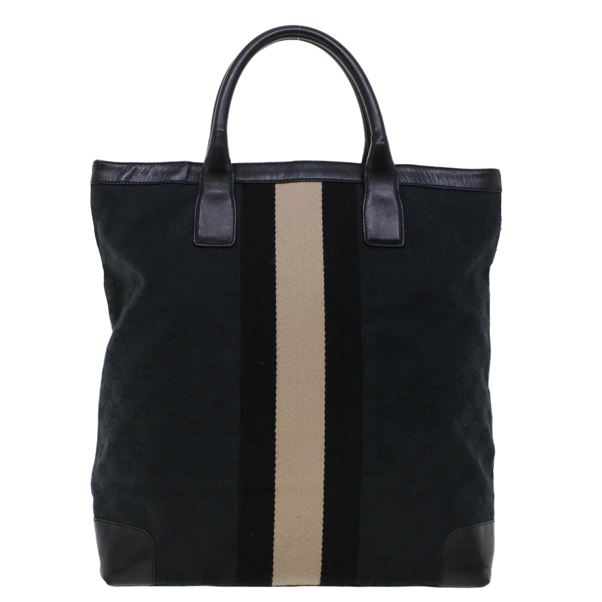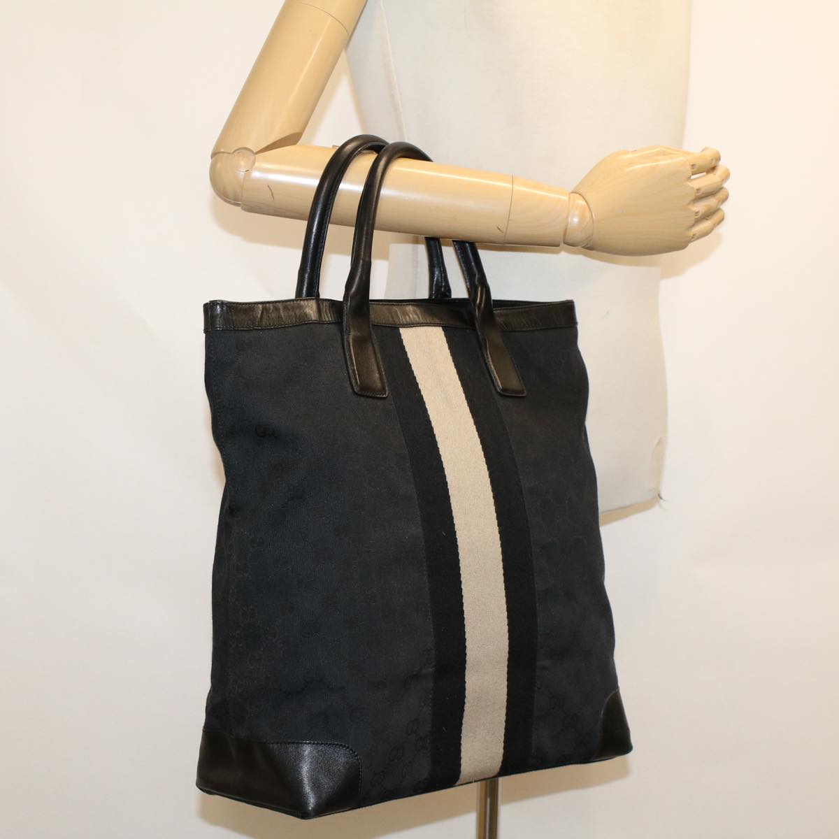 GUCCI GG Canvas Sherry Line Tote Bag Black White 002 1093 3444 Auth th3756