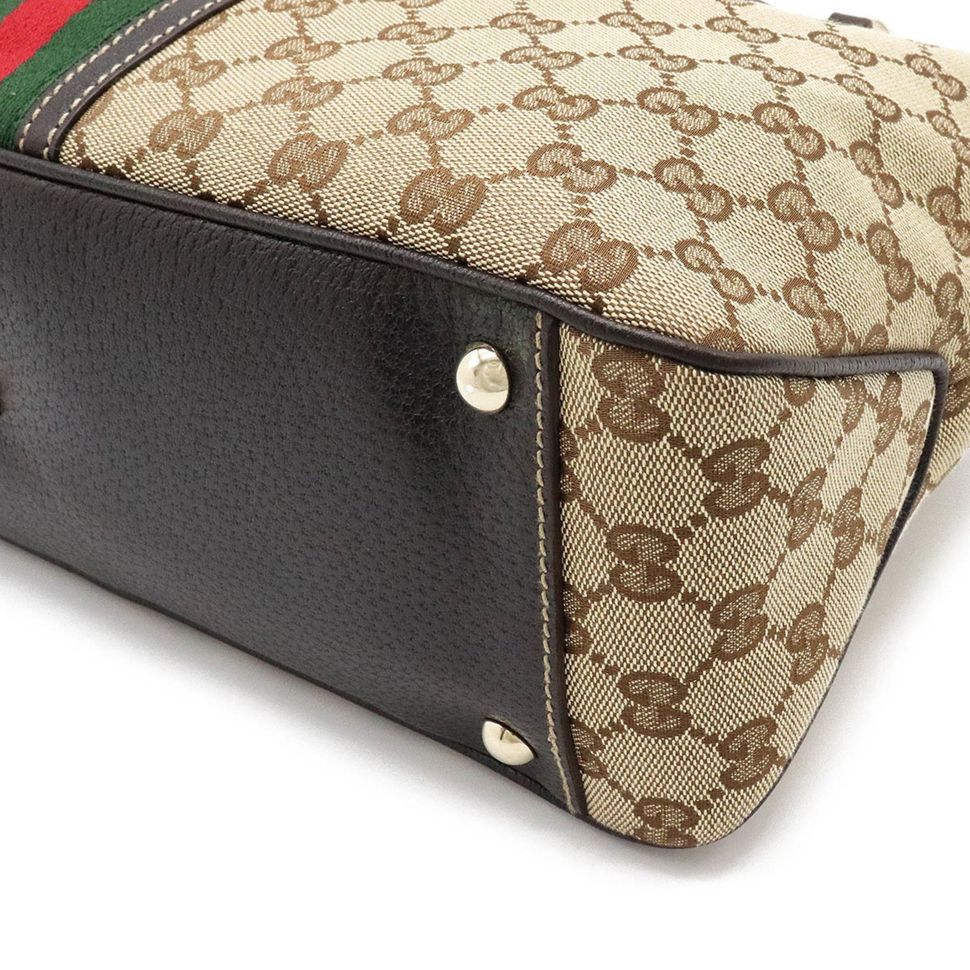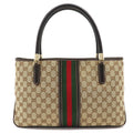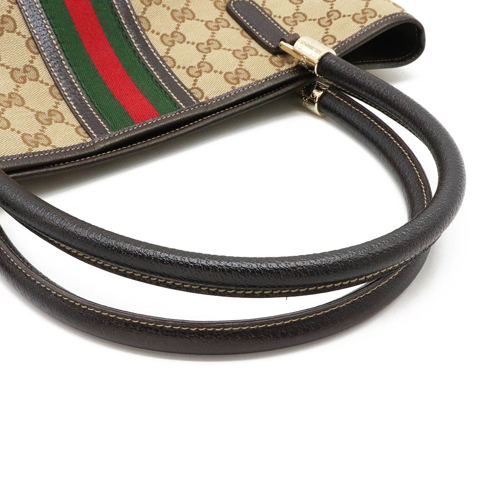 Gucci GG Canvas Sherry Line Tote Bag Shoulder Khaki Beige Dark Brown 161717