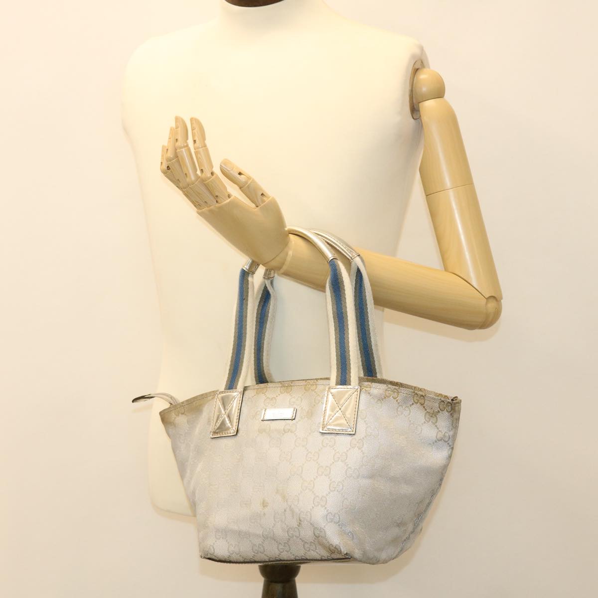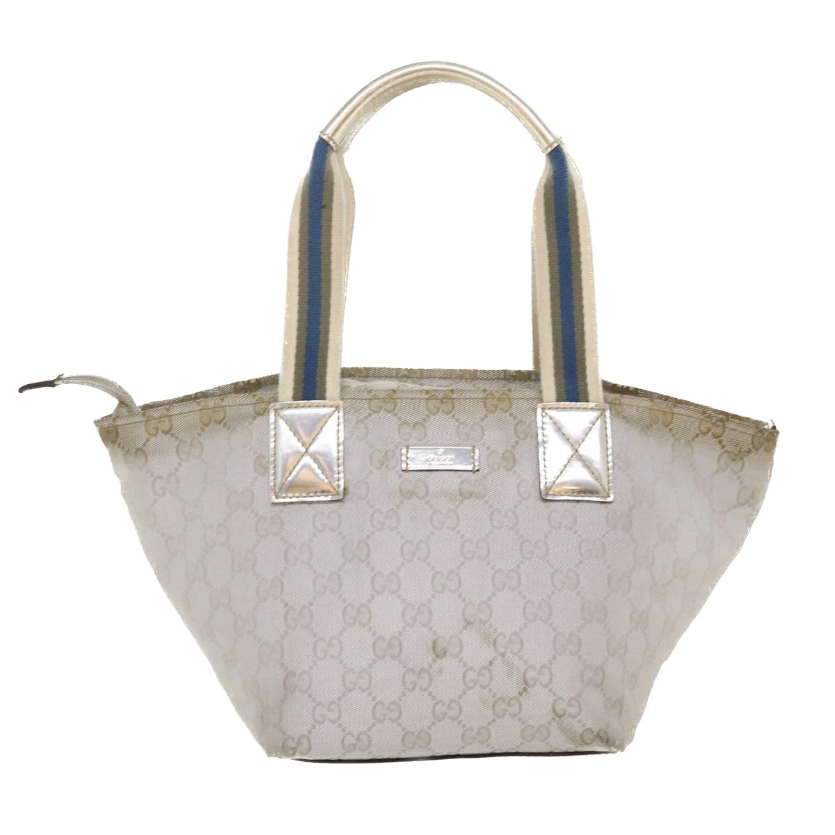 GUCCI GG Canvas Sherry Line Tote Bag Silver Blue gray 131223 yt974