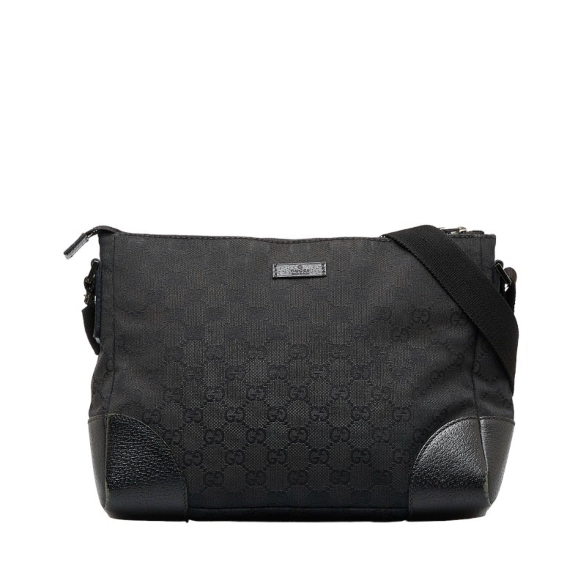 GUCCI GG Canvas Shoulder Bag 114273 Black Leather Women's