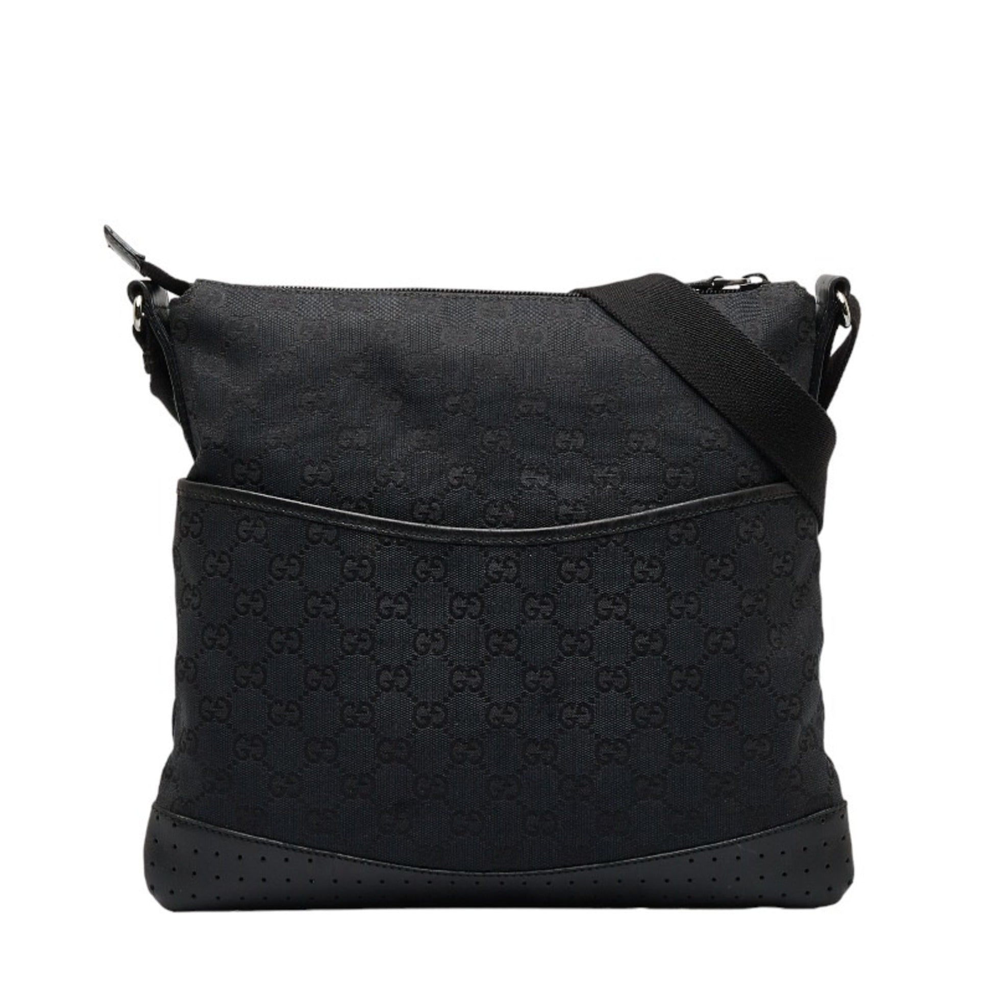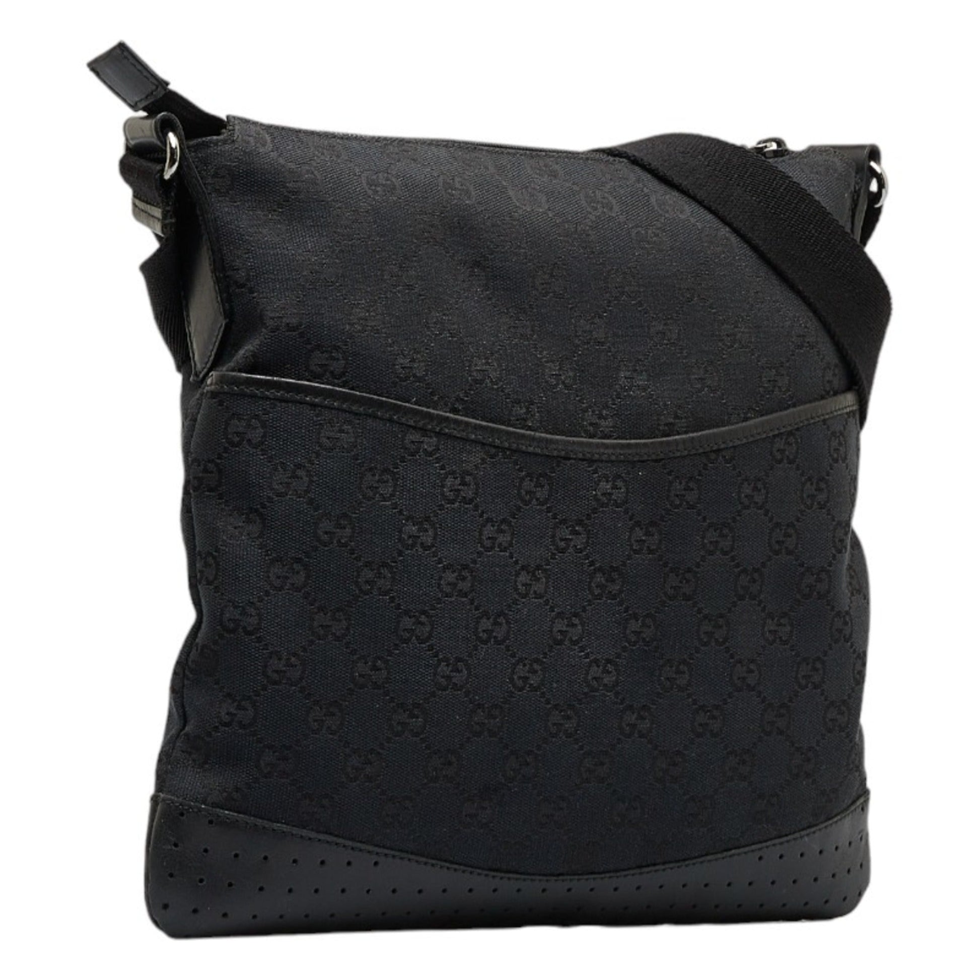 Gucci GG Canvas Shoulder Bag 145857 Black Leather Women's GUCCI